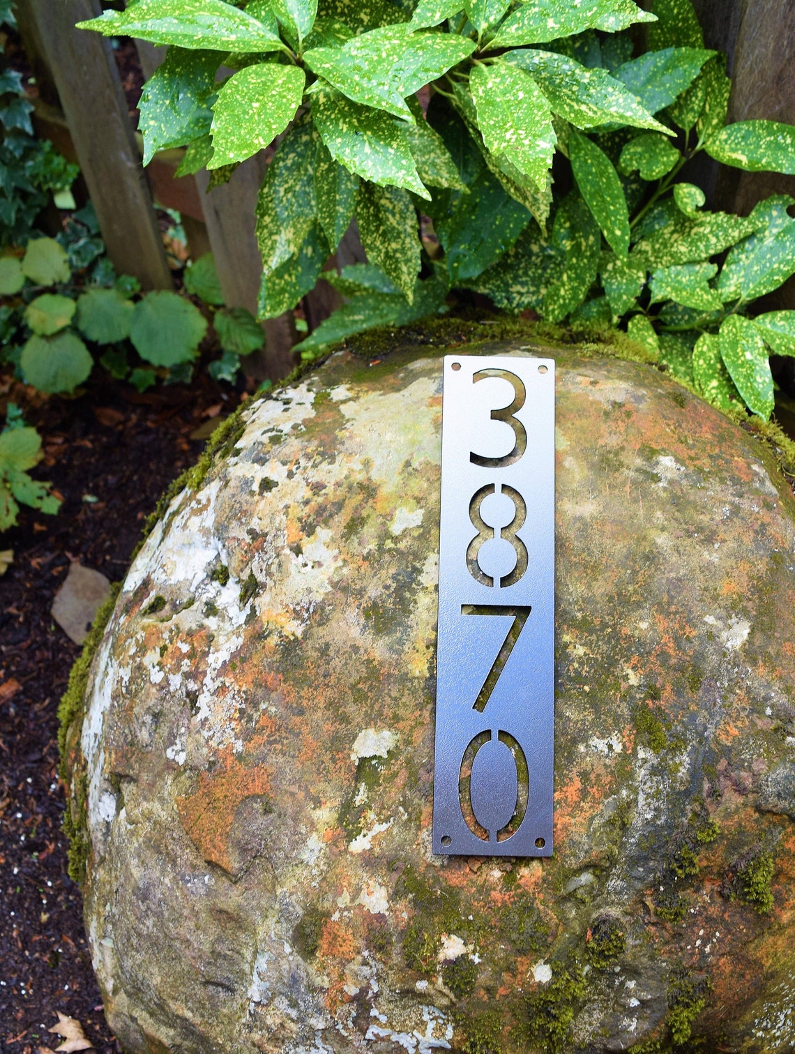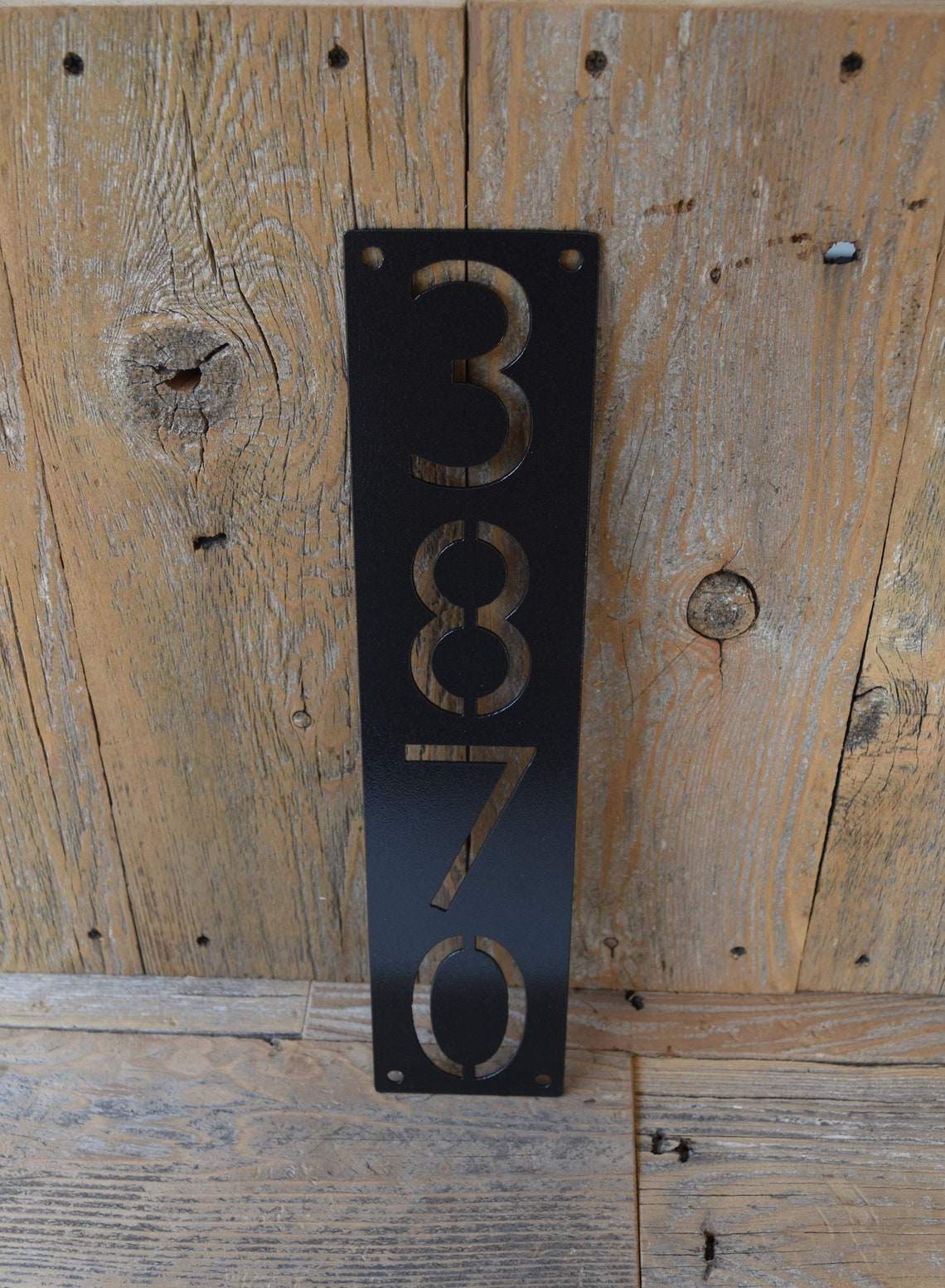 • This is a custom metal address sign. It has pre-cut holes for easy installation and made from steel. This product is personalized with your own house number and will make a great addition to any front porch or mailbox.
