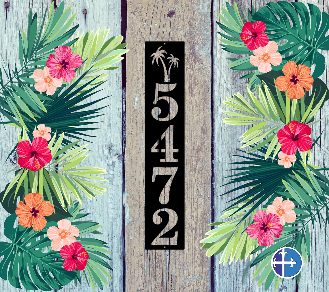 This 3" wide palm tree themed vertical address sign gives the final touch to your home. Whether you live in a tropical area or want to bring the tropical vibe to you, this address sign will catch the attention of your neighbors!