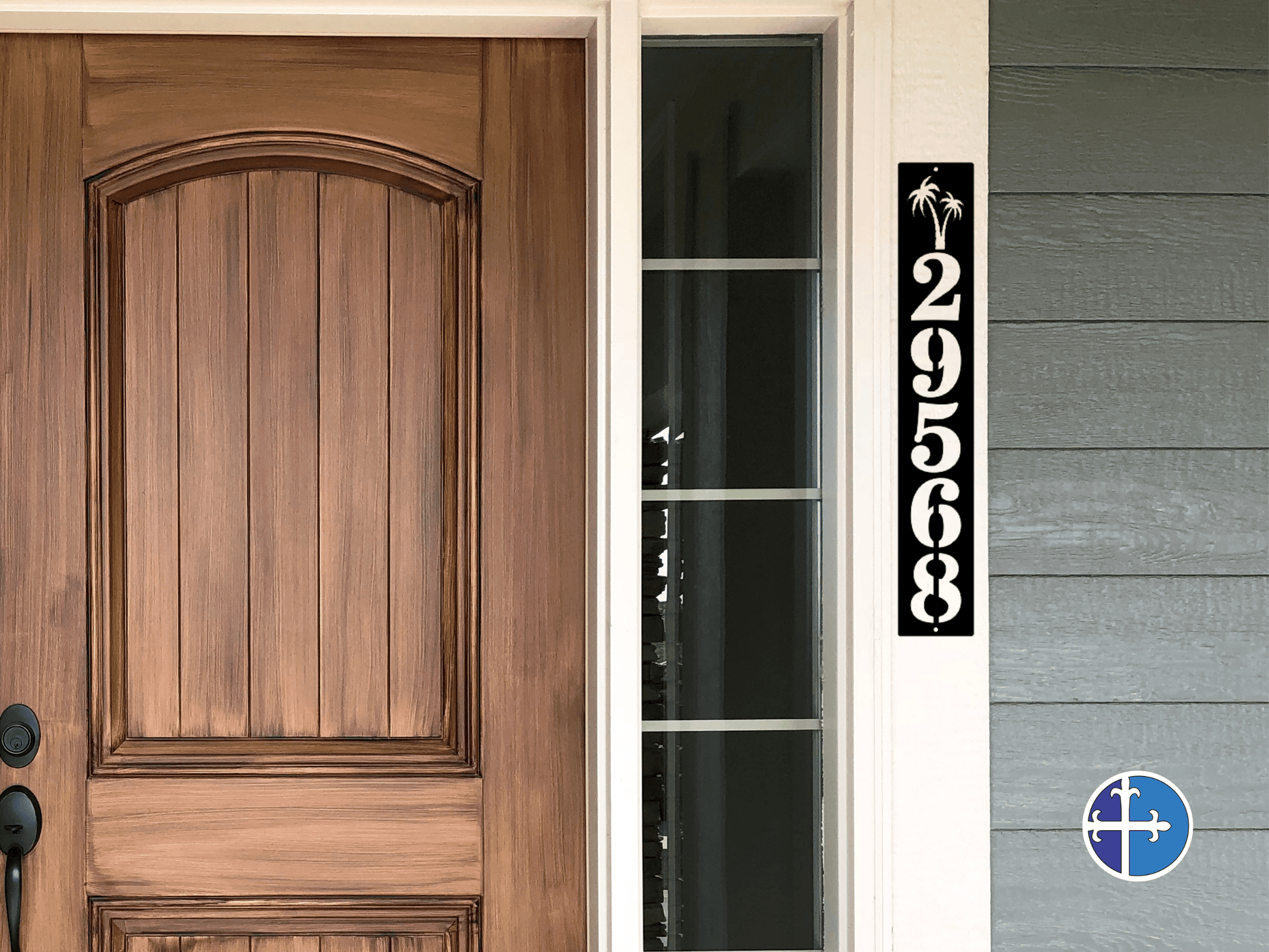 This 4.5" wide palm tree themed vertical address sign gives the final touch to your home. Whether you live in a tropical area or want to bring the tropical vibe to you, this address sign will catch the attention of your neighbors!