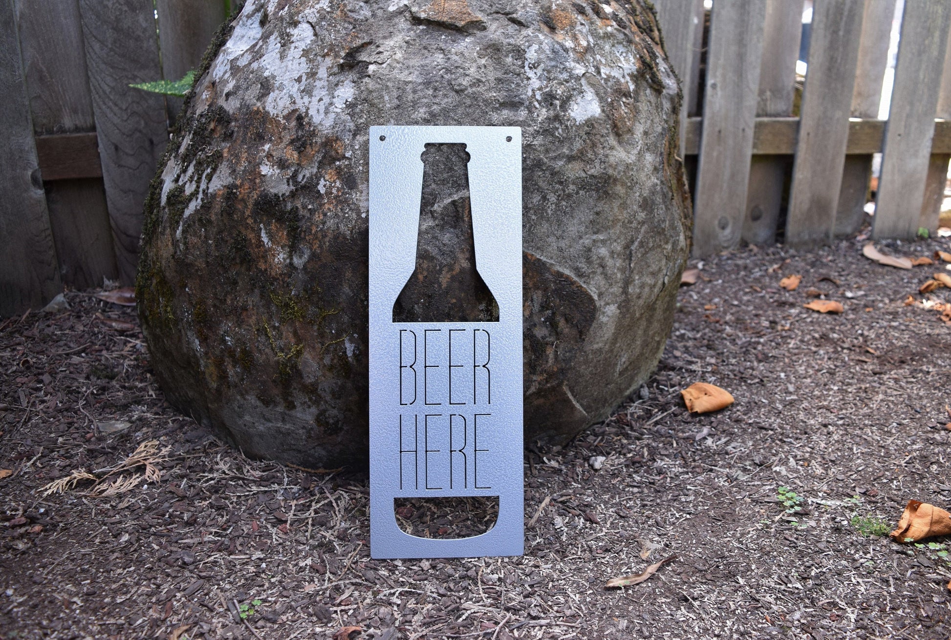 • This is a Made to Order "Beer Here" Sign. It has pre-cut holes for easy installation and made from steel. This product is cut on demand and will make a great addition to any "Man Cave", "Garage", "Bar" or "Home"