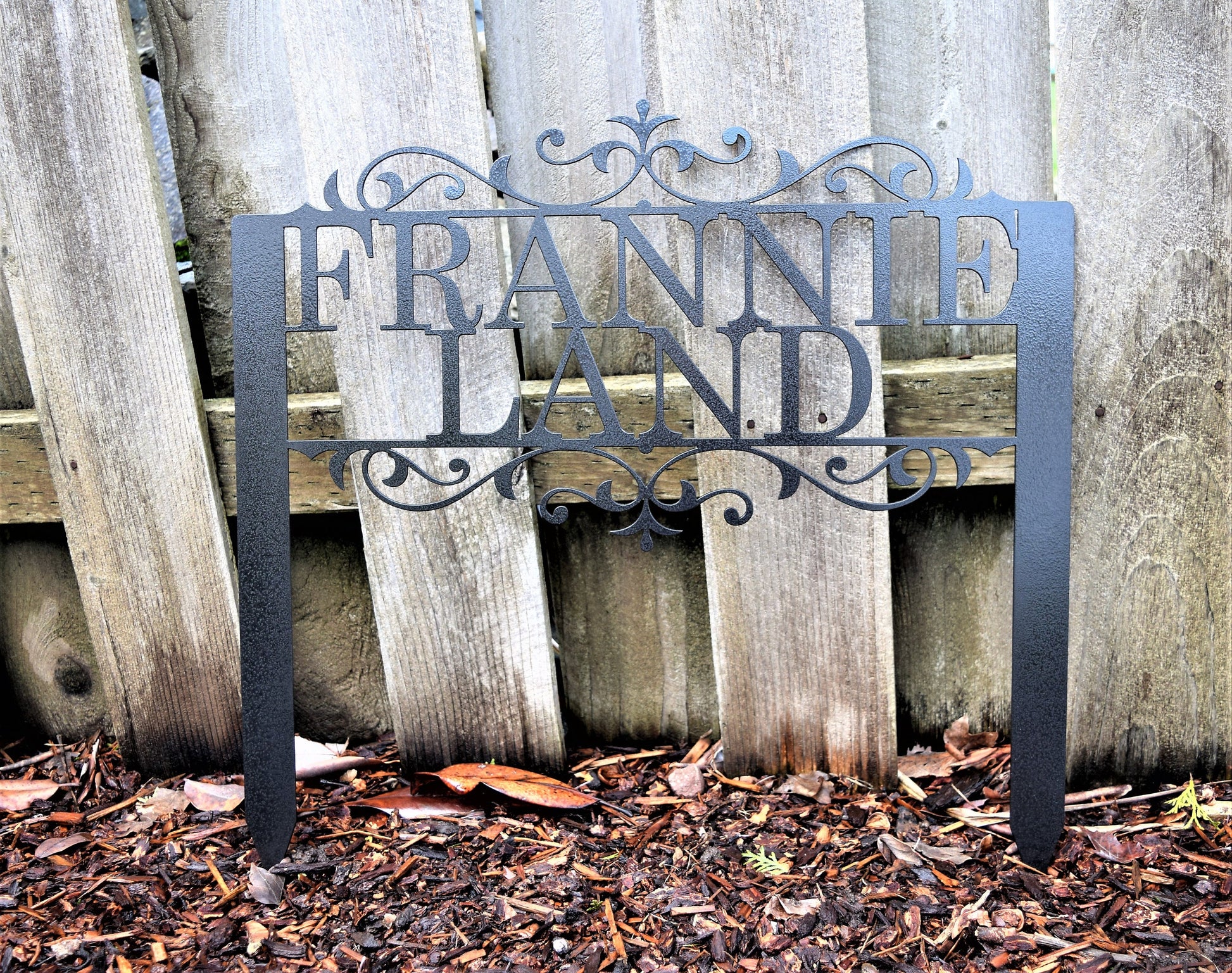 Introducing our Steel Garden Sign, a perfect blend of personalization and elegance for your outdoor space. Crafted with durable steel, this sign effortlessly stakes into the ground, allowing you to showcase your unique message or name with pride. With its exquisite flourished border, it adds a touch of sophistication to any garden, making it a must-have accessory for those seeking both style and individuality.