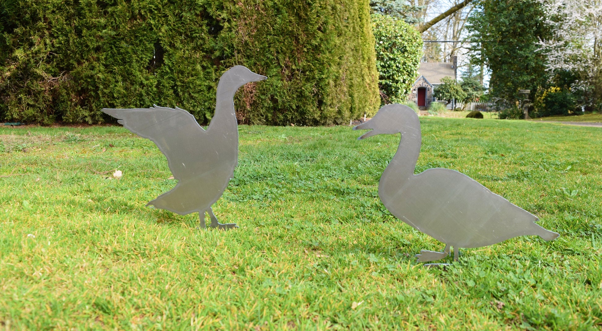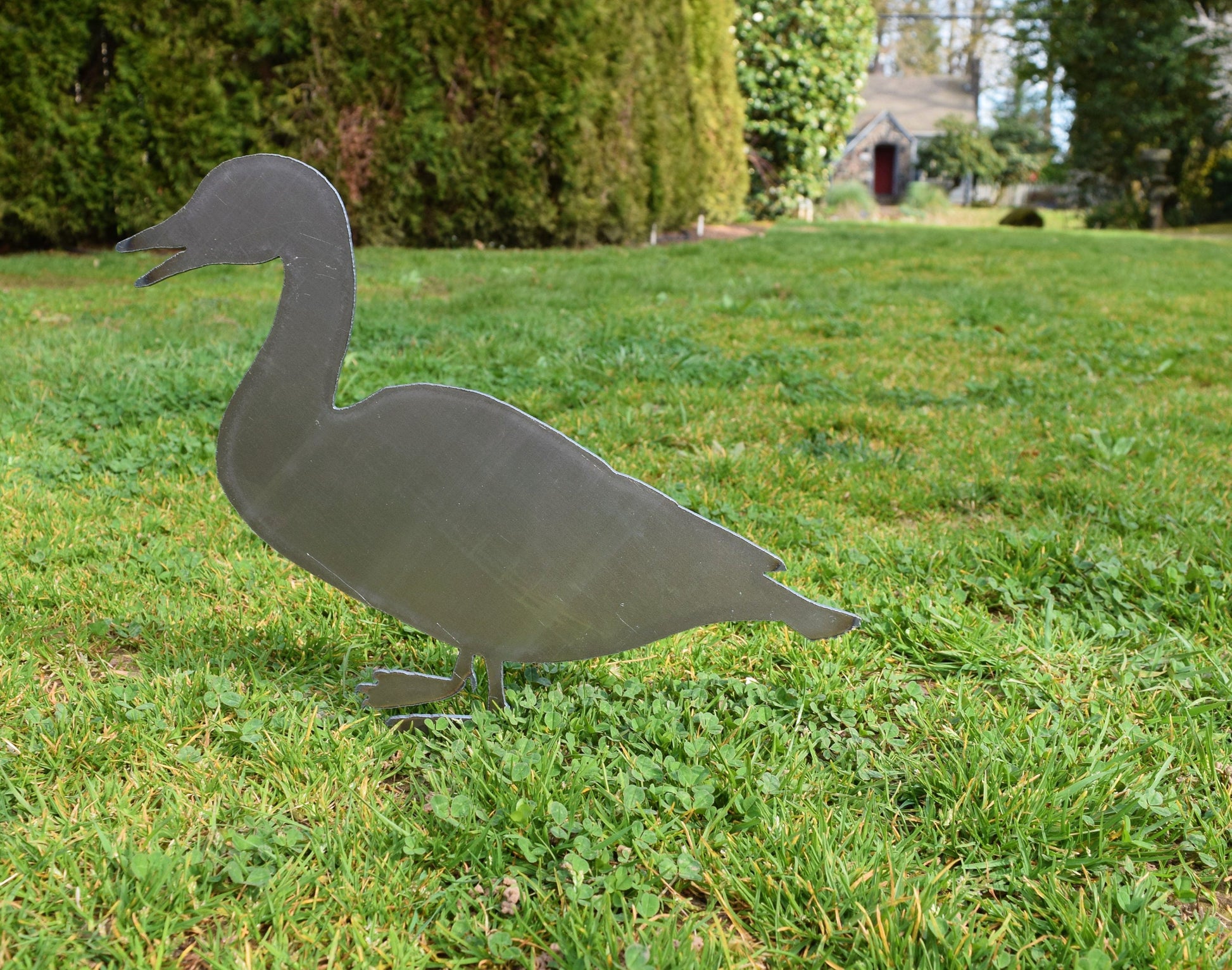 • The ducks come with a garden stake "pre-attached". When placing in the ground we recommend you "water" your dirt before trying to put the stake in. The metal can bend in hard dirt or soil.