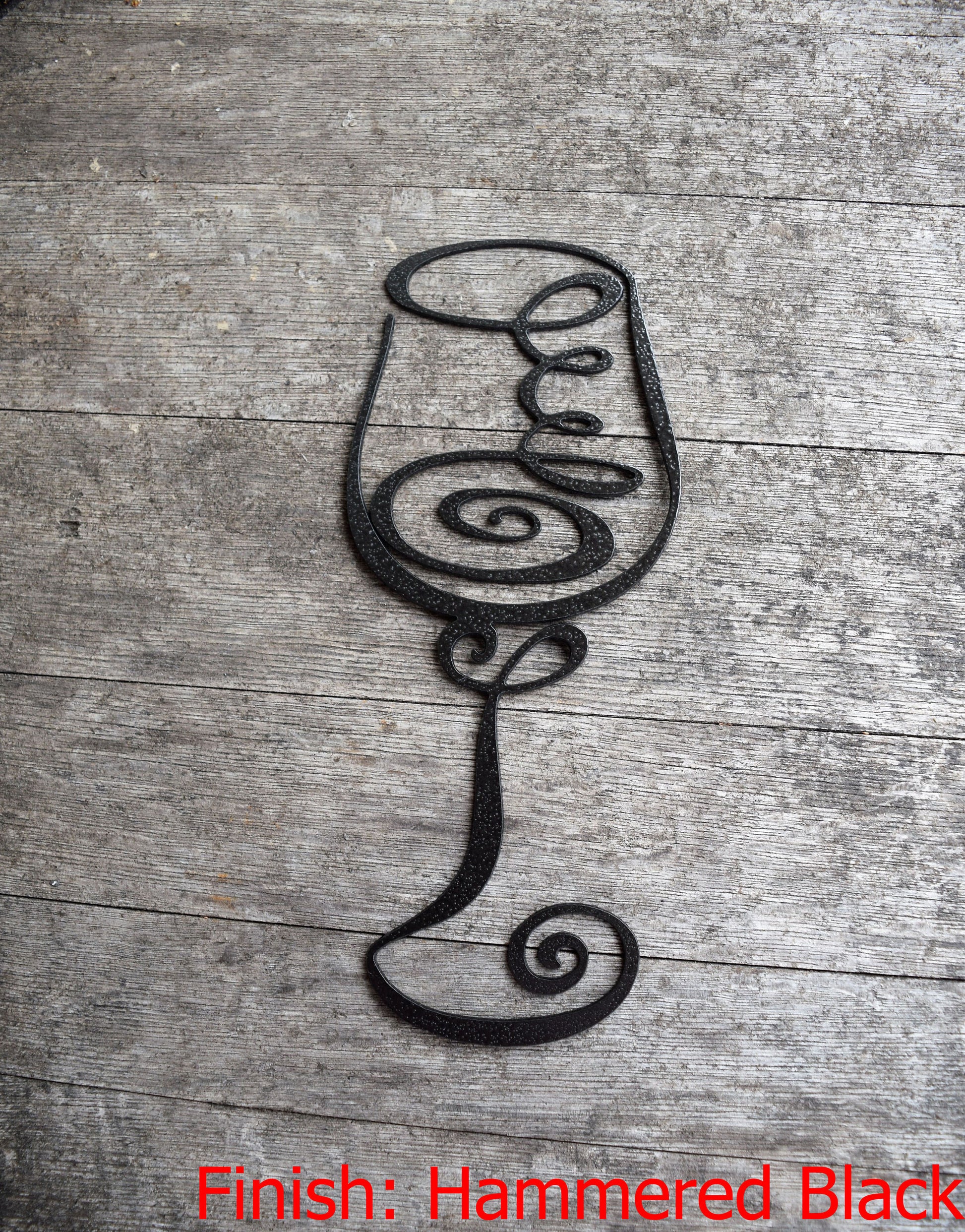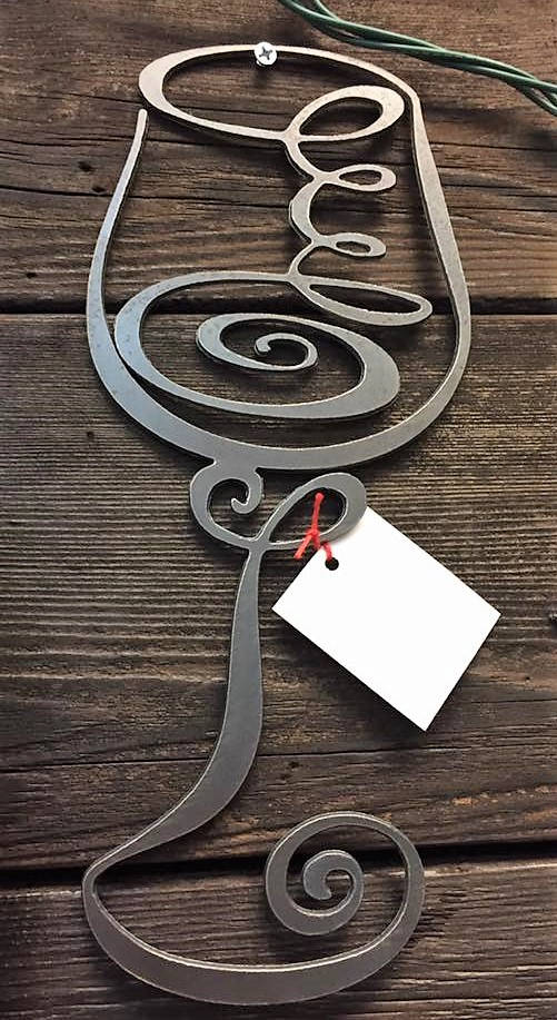 • Hanging: The "Wine glass" signs do not have hooks on them. They are a completely flat piece of metal. We recommend using small finishing nails. (ie. The classic white/silver nails that come in a small pack) Take two nails...one on each end to make it level. This piece is not heavy so you can just hammer straight into the drywall or other wall surfaces.
