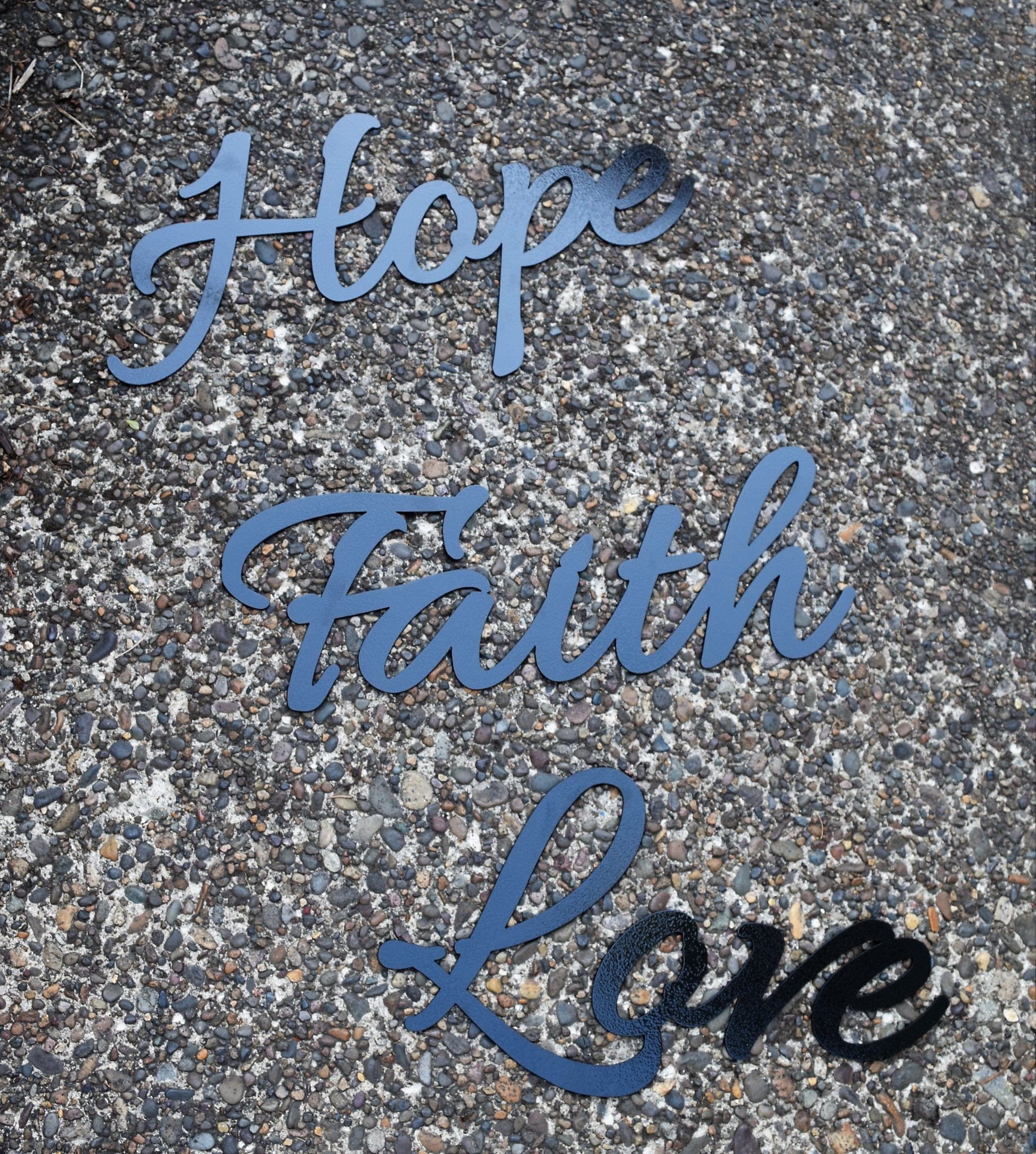 Beautiful "Hope, Faith, Love" sign mean to mount on a wall in your home or business.