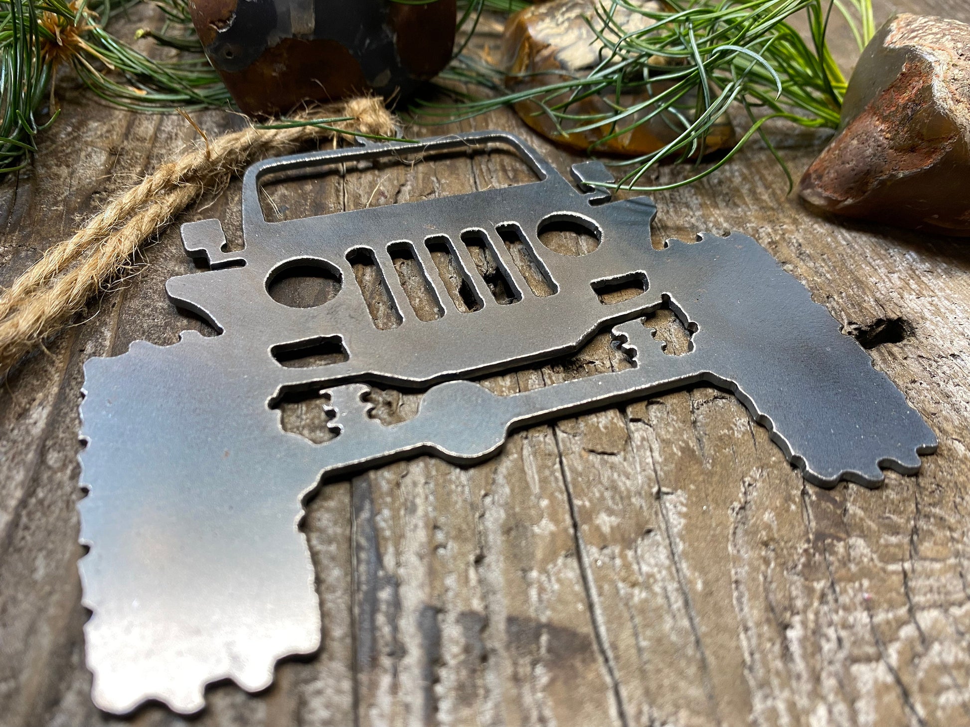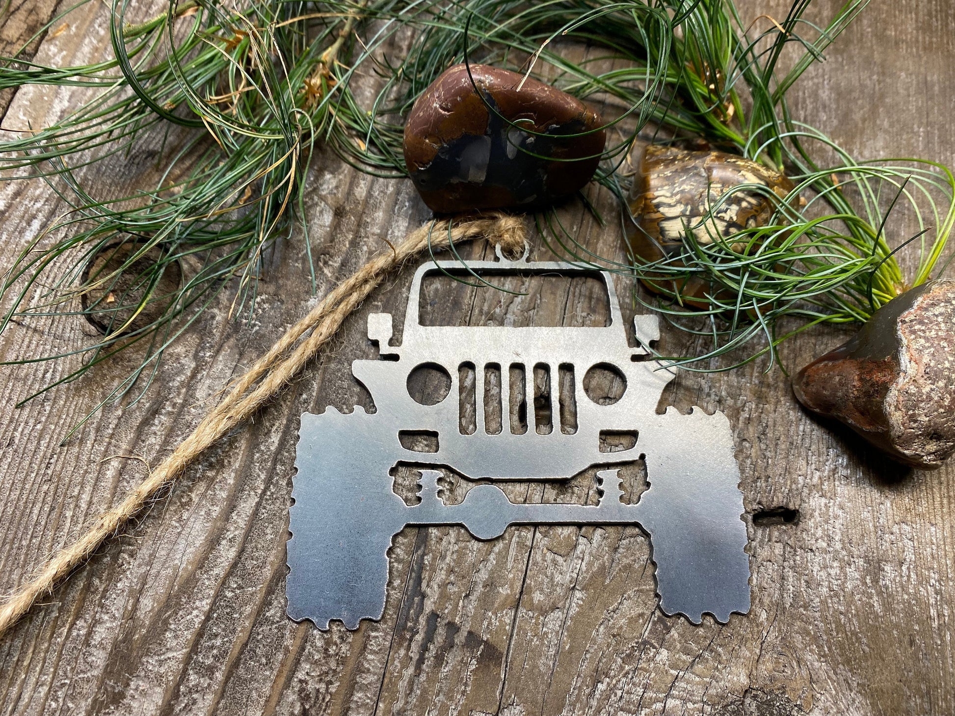 1 Jeep TJ - Ornament approximately 4" H x 4.5" W. The ornament will include ribbon/twine to hang. May vary in color or style from what is shown in the pictures.