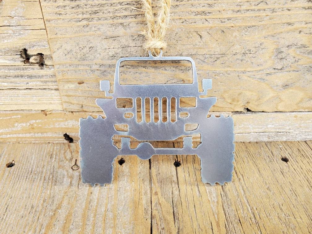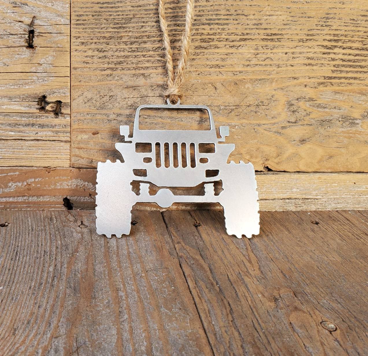 1 Jeep YJ - Ornament approximately 4" H x 4.5" W. The ornament will include twine to hang. May vary in color or style from what is shown in the pictures.