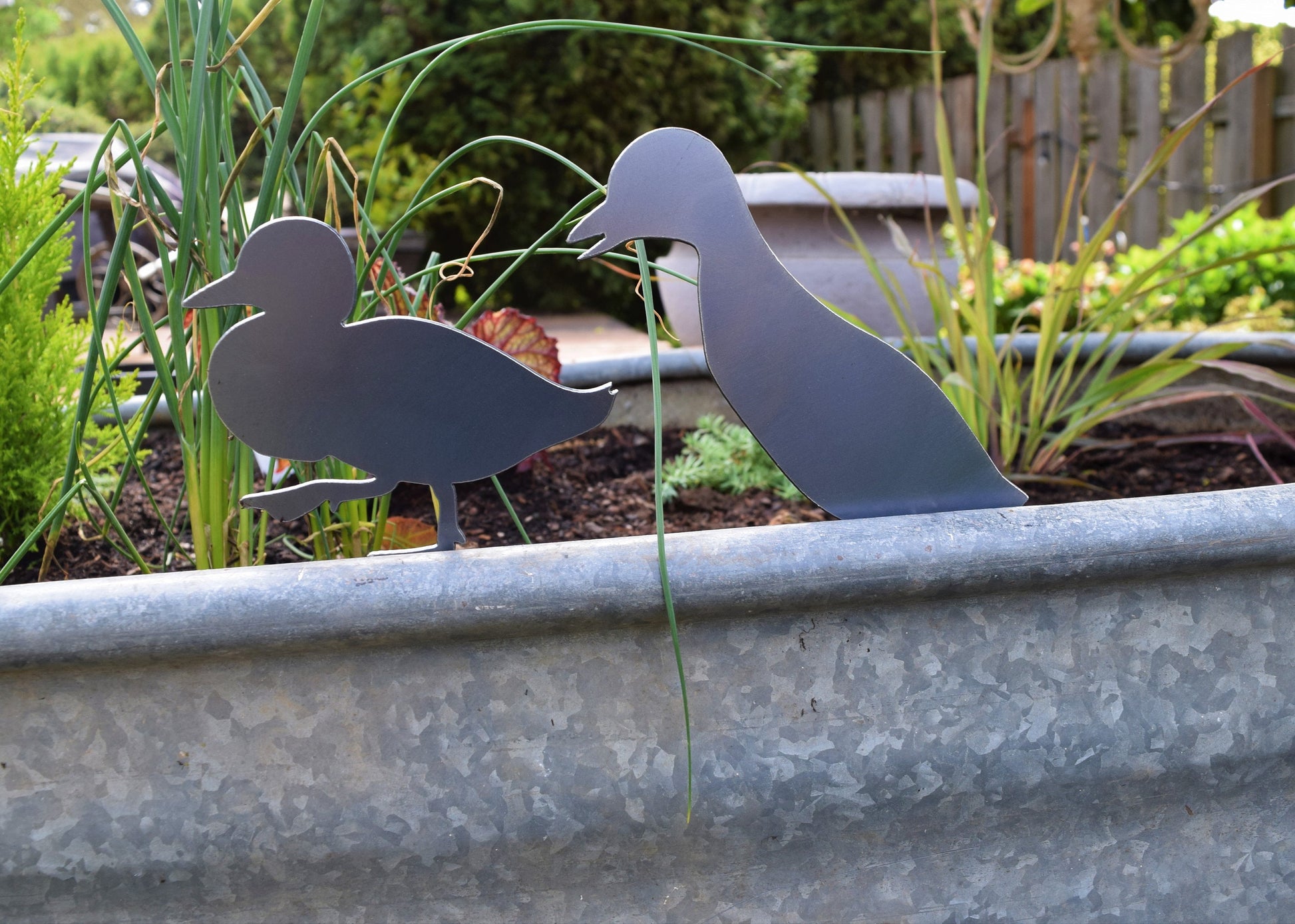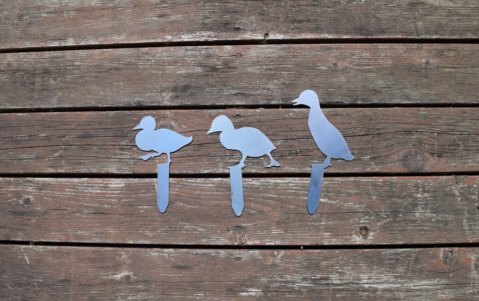 • The ducklings come with a garden stake "pre-attached". When placing in the ground we recommend you "water" your dirt before trying to put the stake in. The metal can bend in hard dirt or soil.