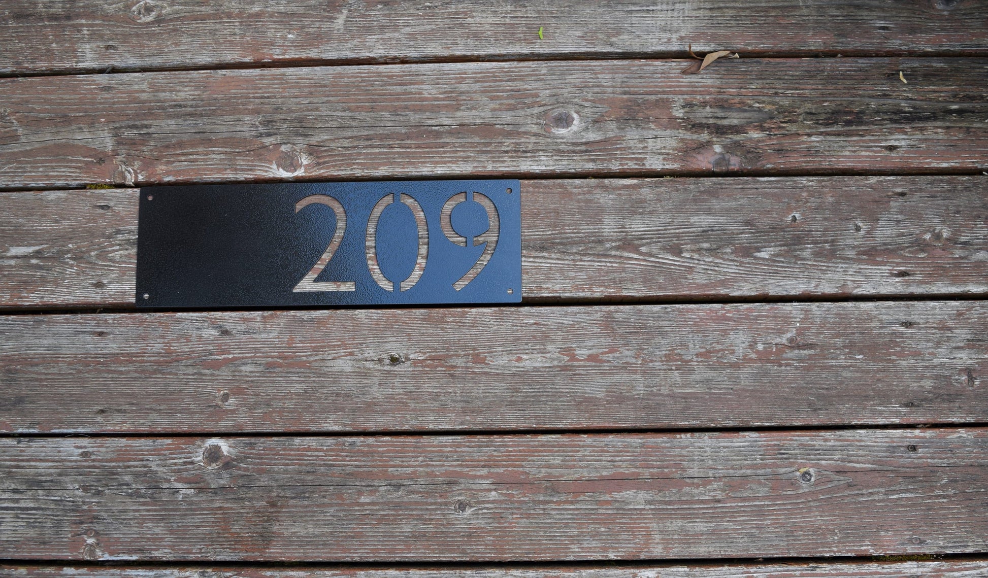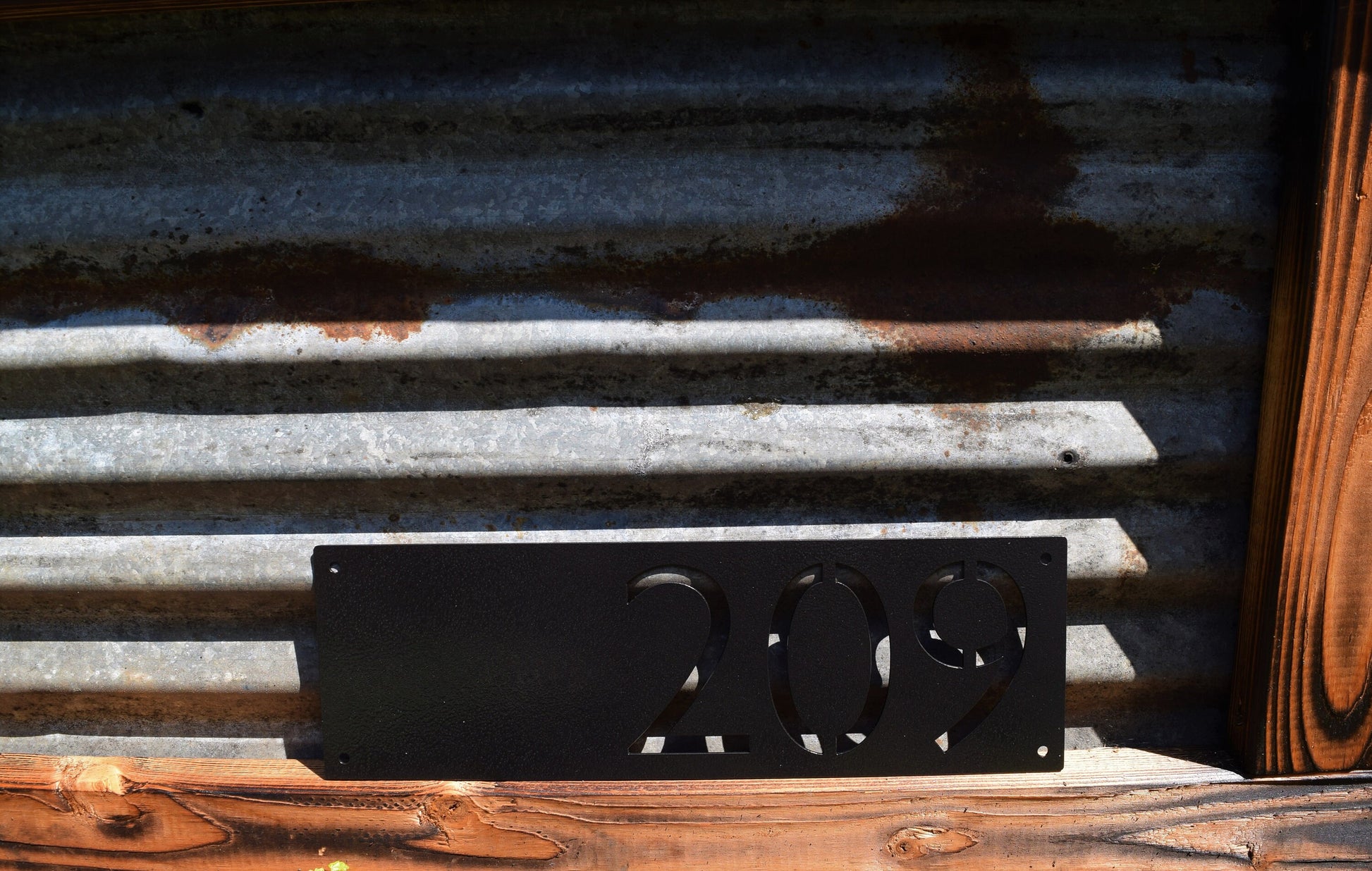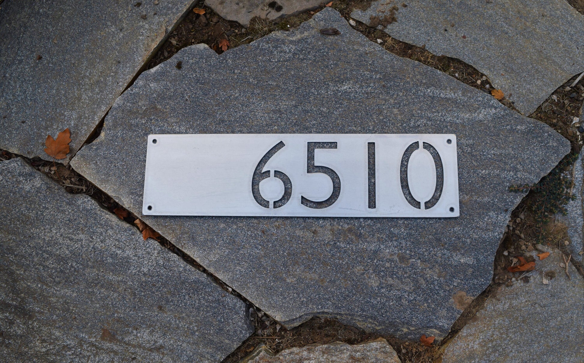 • This is a custom metal address sign. It has pre-cut holes for easy installation and is made from steel. This product is personalized with your own house number and will make a great addition to any front porch or mailbox.