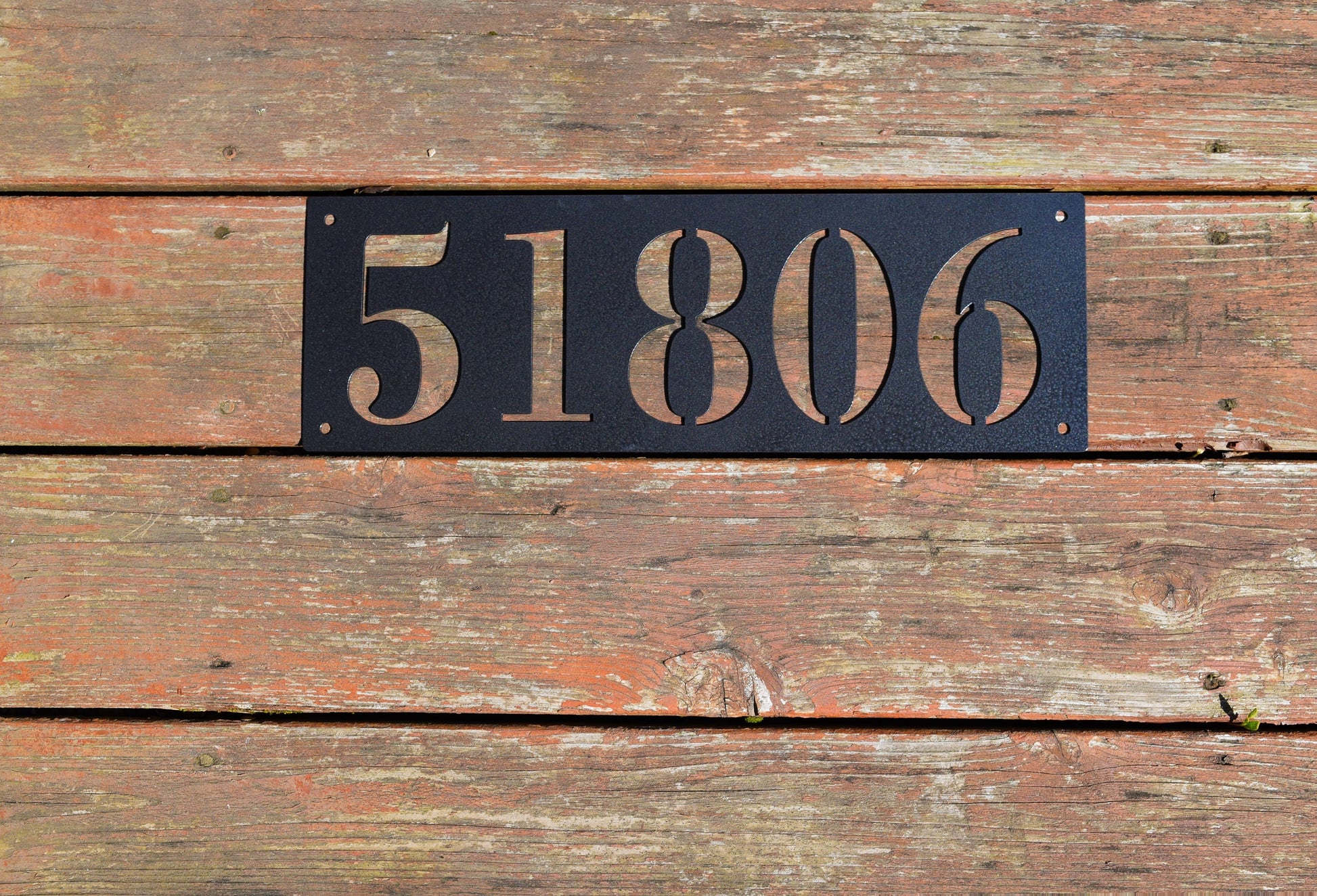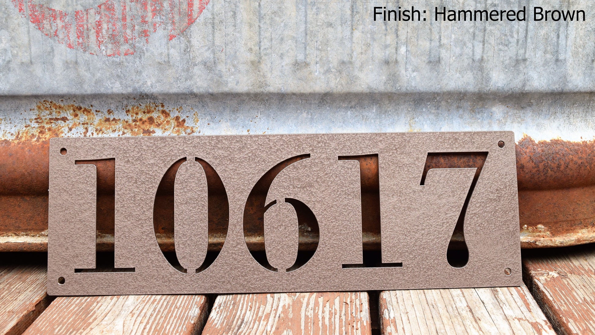 • This is a custom metal address sign. It has pre-cut holes for easy installation and made from steel. This product is personalized with your own house number and will make a great addition to any front porch or mailbox.