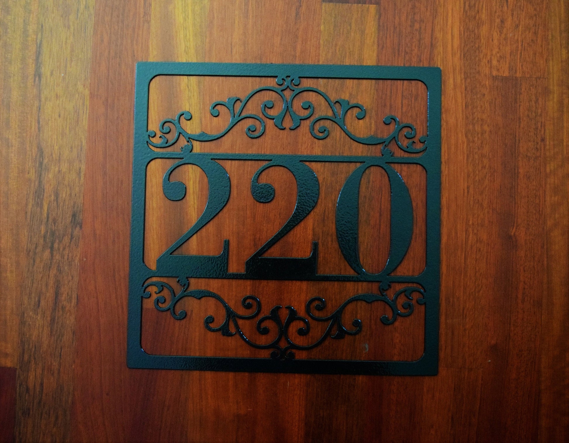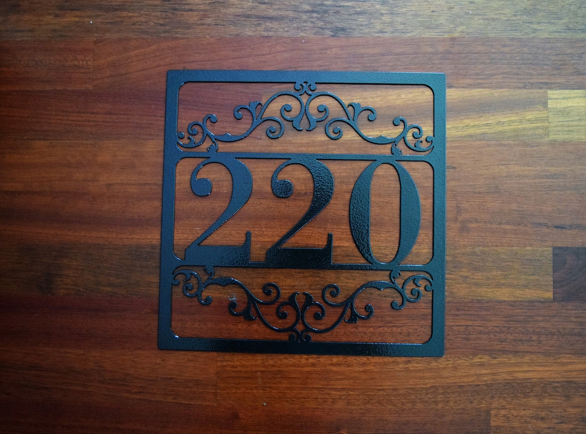 • This is a custom metal address sign. It has 4 pre-cut holes for easy installation and made from steel. This product is personalized with your own house number and will make a great addition to any front porch or mailbox.