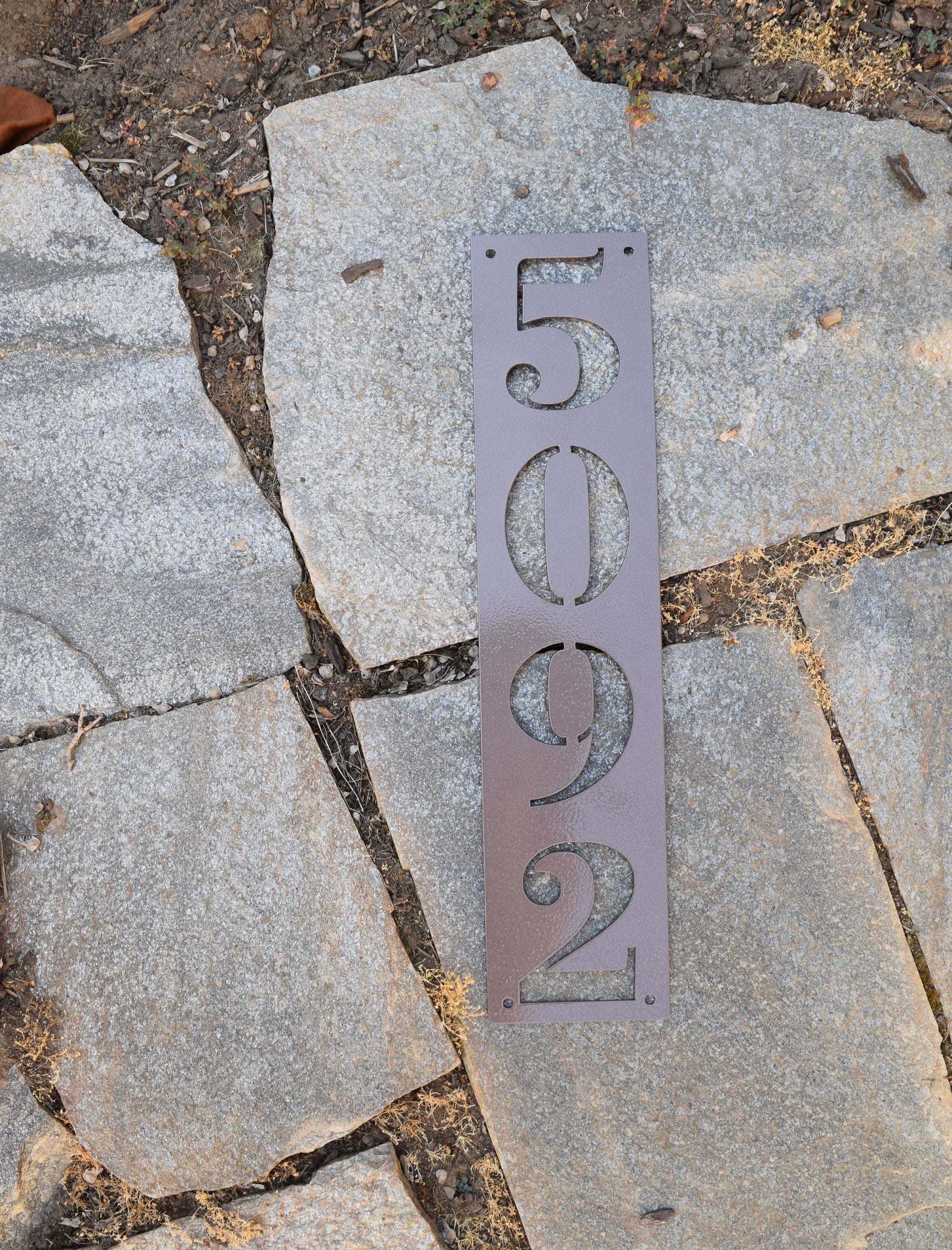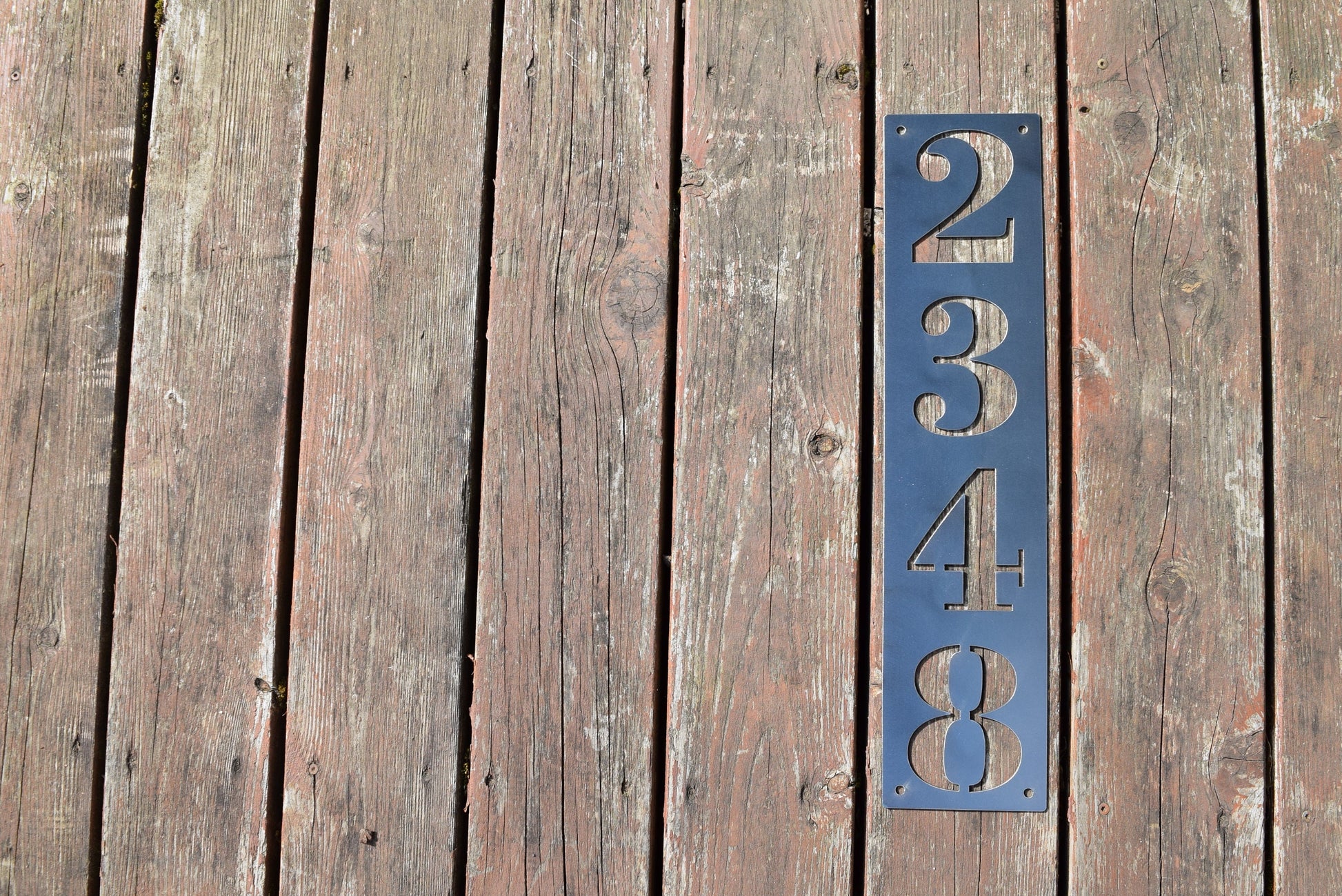 • This is a custom metal address sign. It has pre-cut holes for easy installation and made from steel. This product is personalized with your own house number and will make a great addition to any front porch or mailbox.