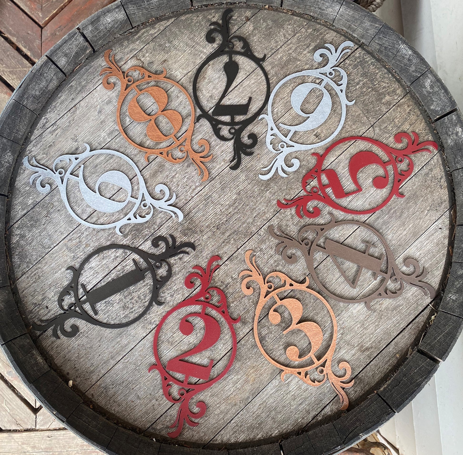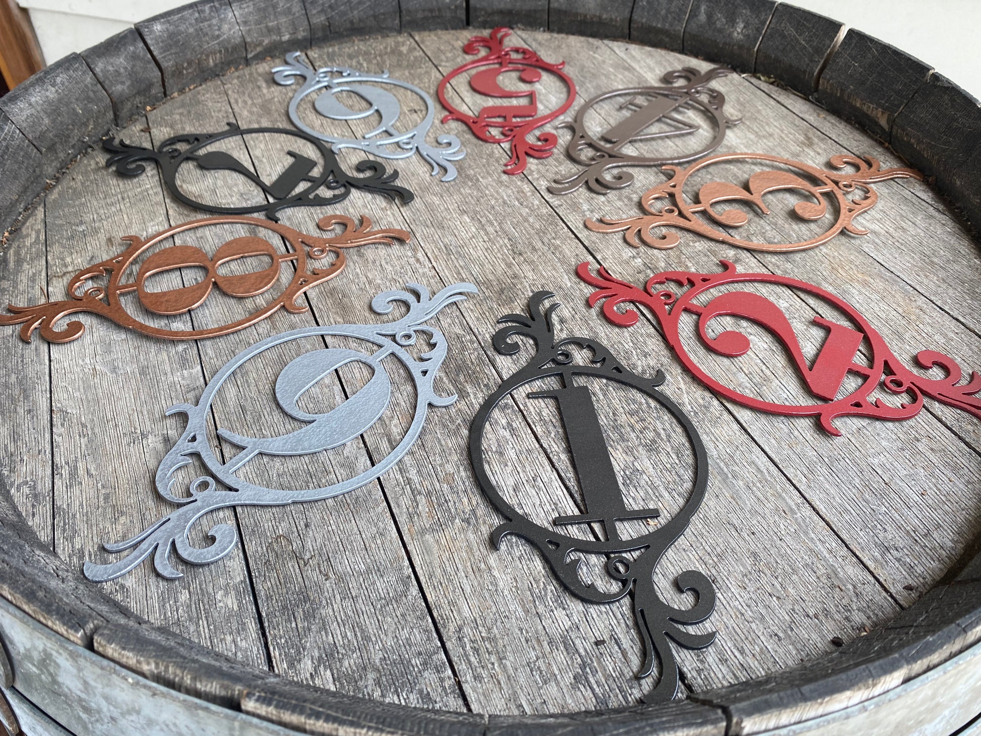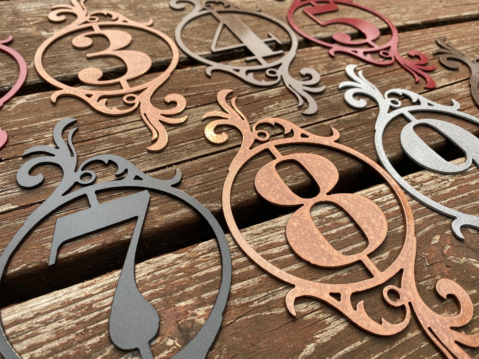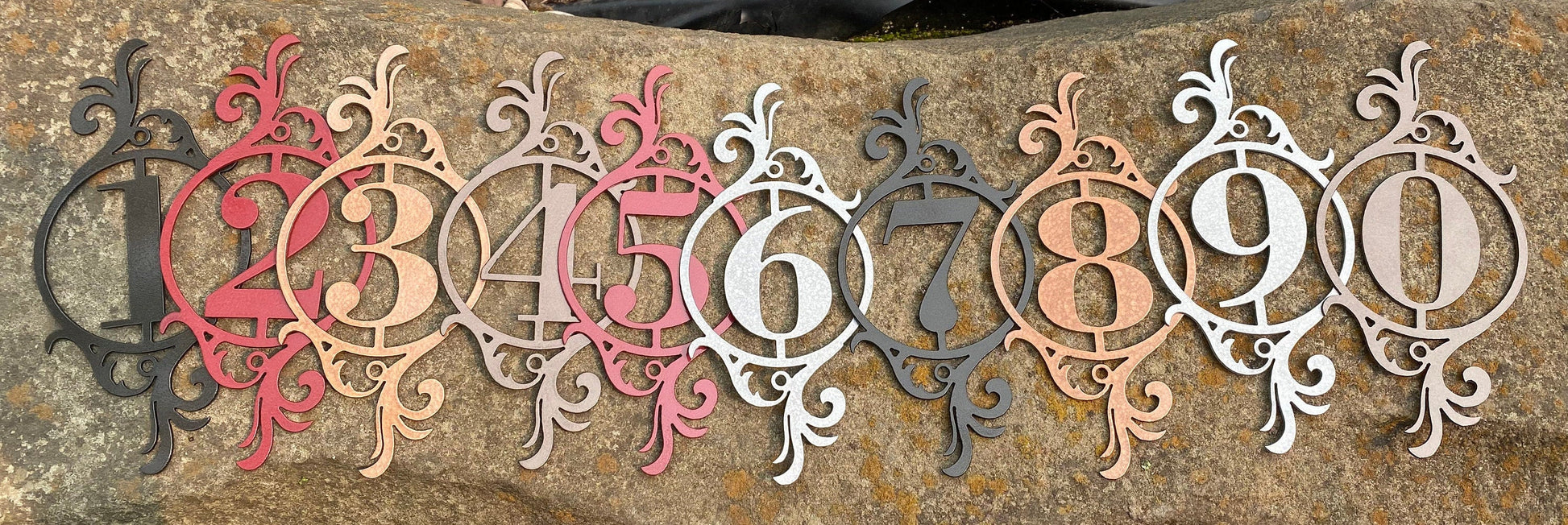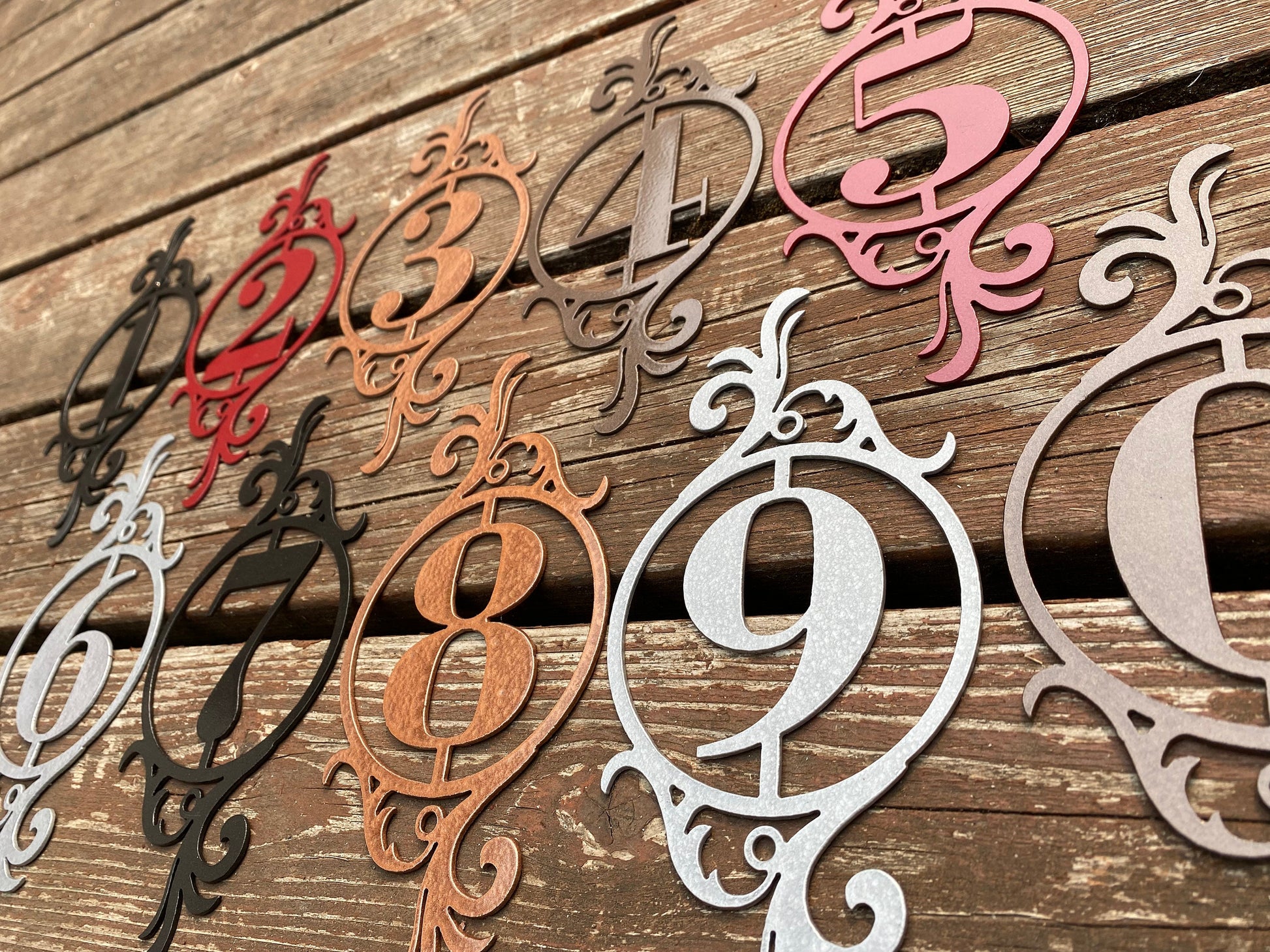 • This is a custom metal address sign. It has pre-cut holes for easy installation and is made from steel. This product will make a great addition to any front porch or mailbox.