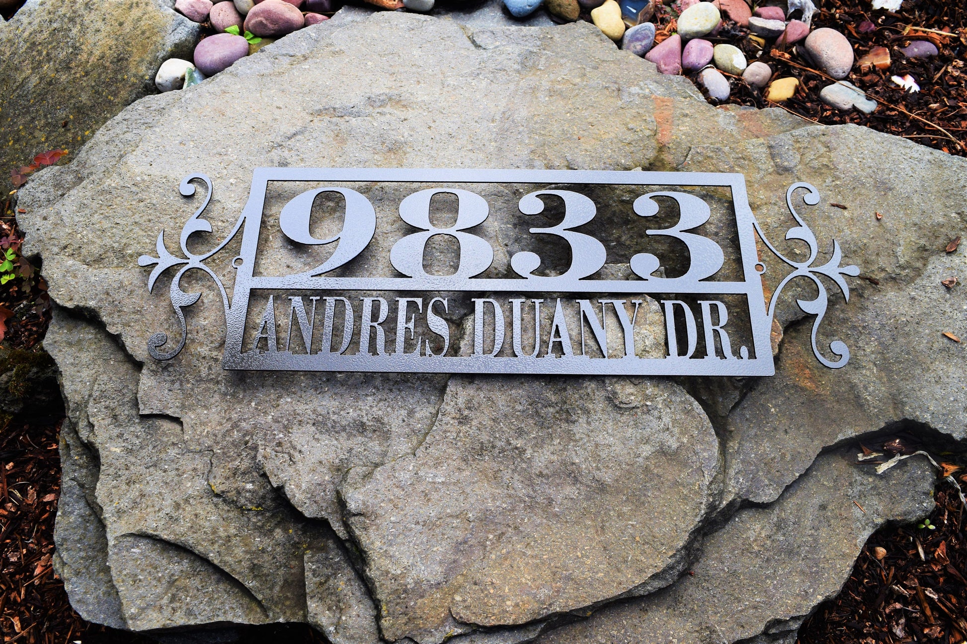 • This is a custom metal address sign. It has pre-cut holes for easy installation and made from steel. This product is personalized with your own house number and will make a great addition to any front porch or mailbox.