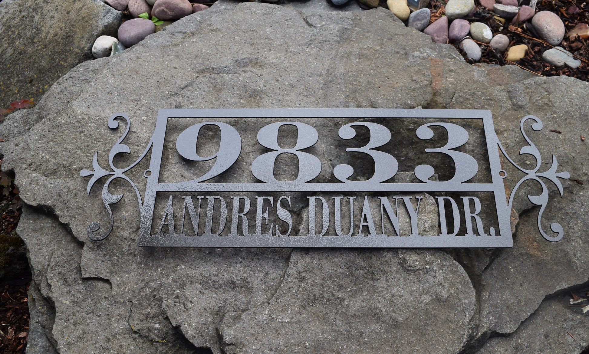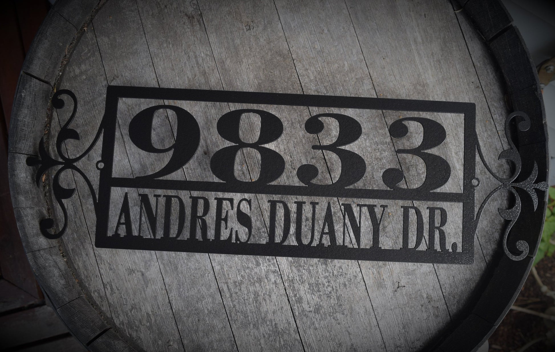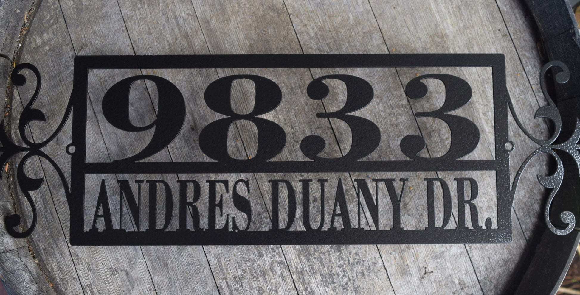 Custom Horizontal Flourish-End Double Line Address Sign