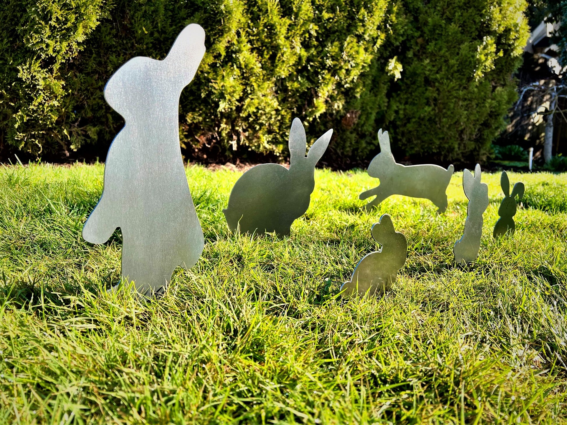 • The rabbits/bunnies come with a garden stake. When placing in the ground we recommend you "water/soften" your dirt before trying to put the stake in. The metal can bend in hard dirt or soil.
