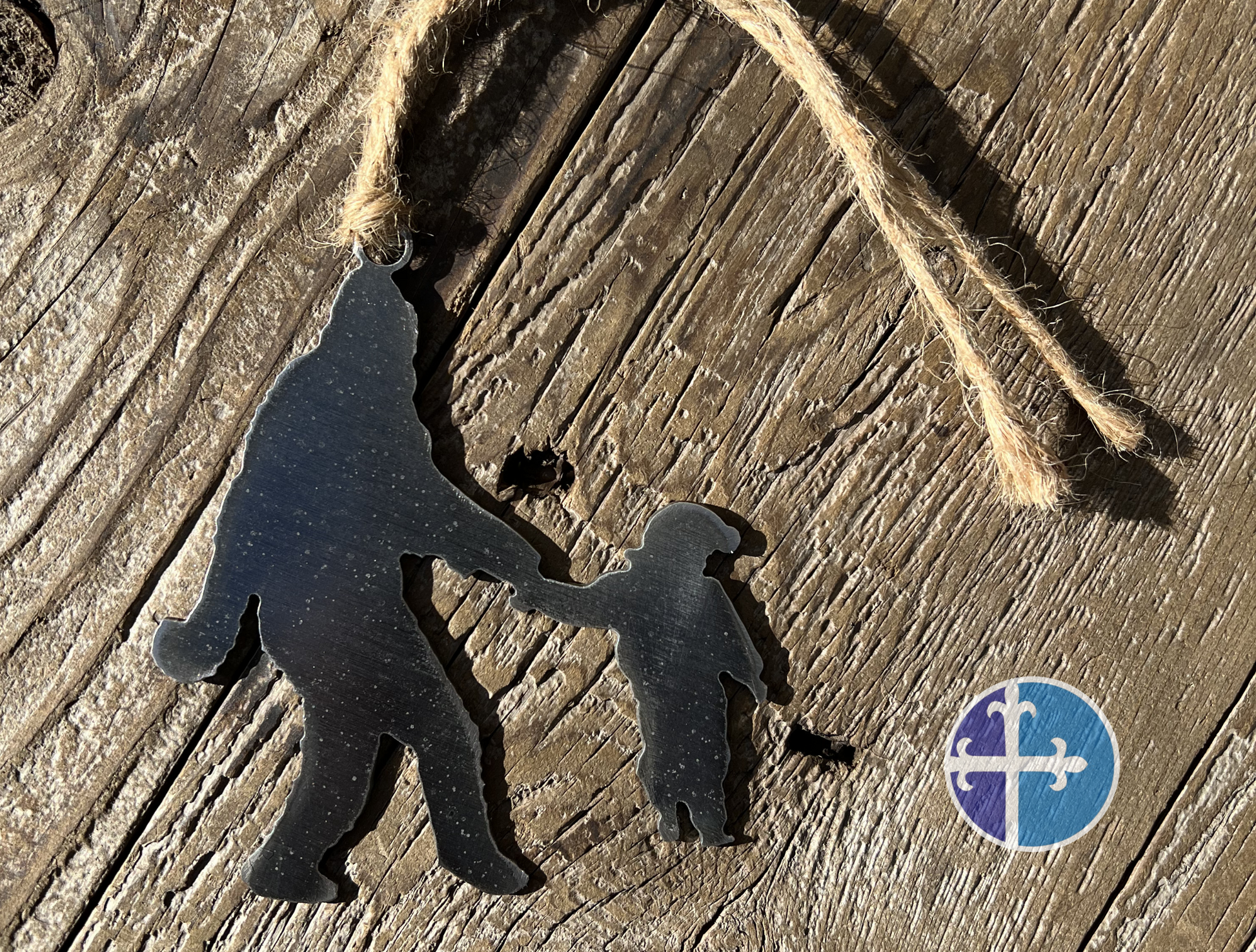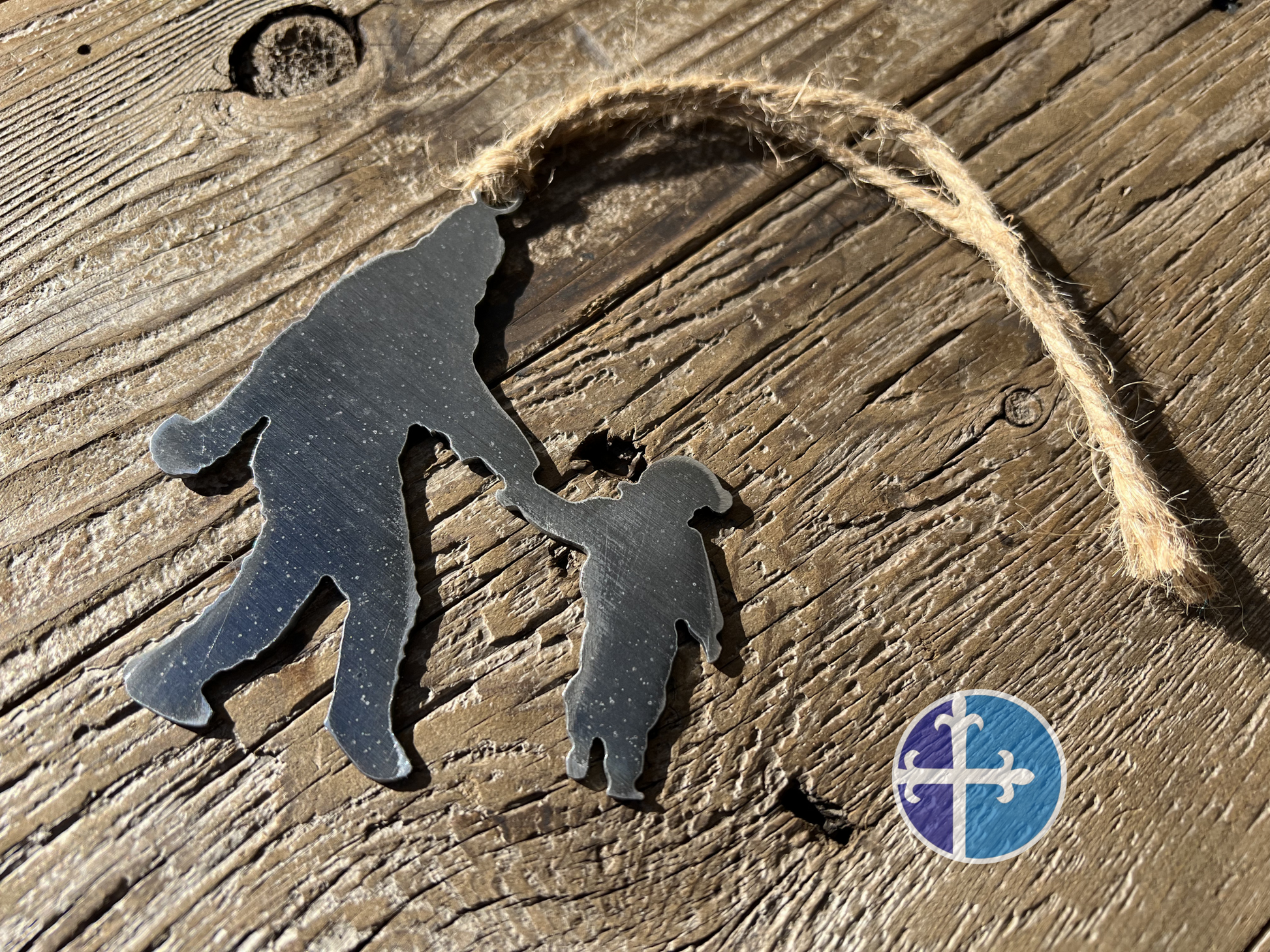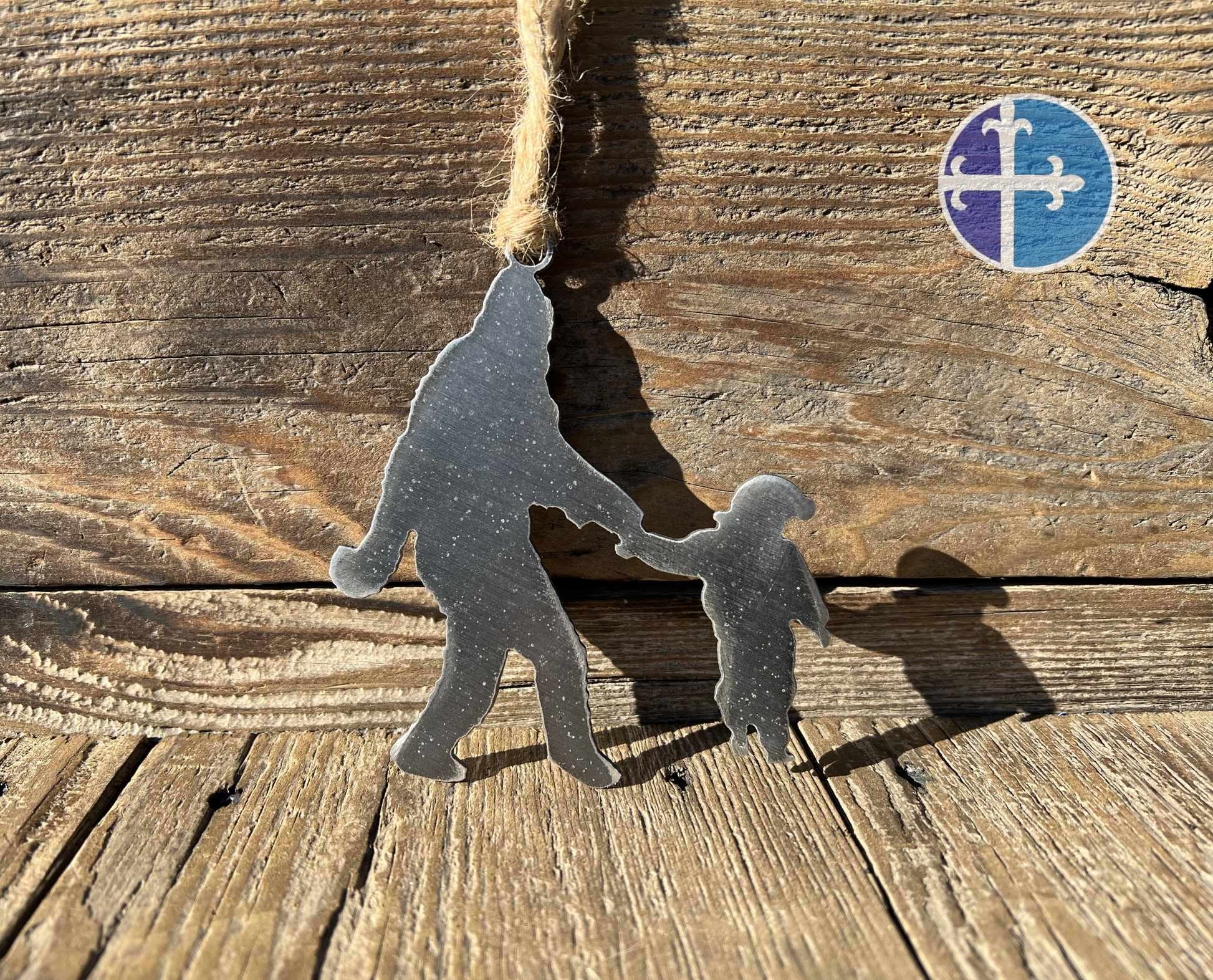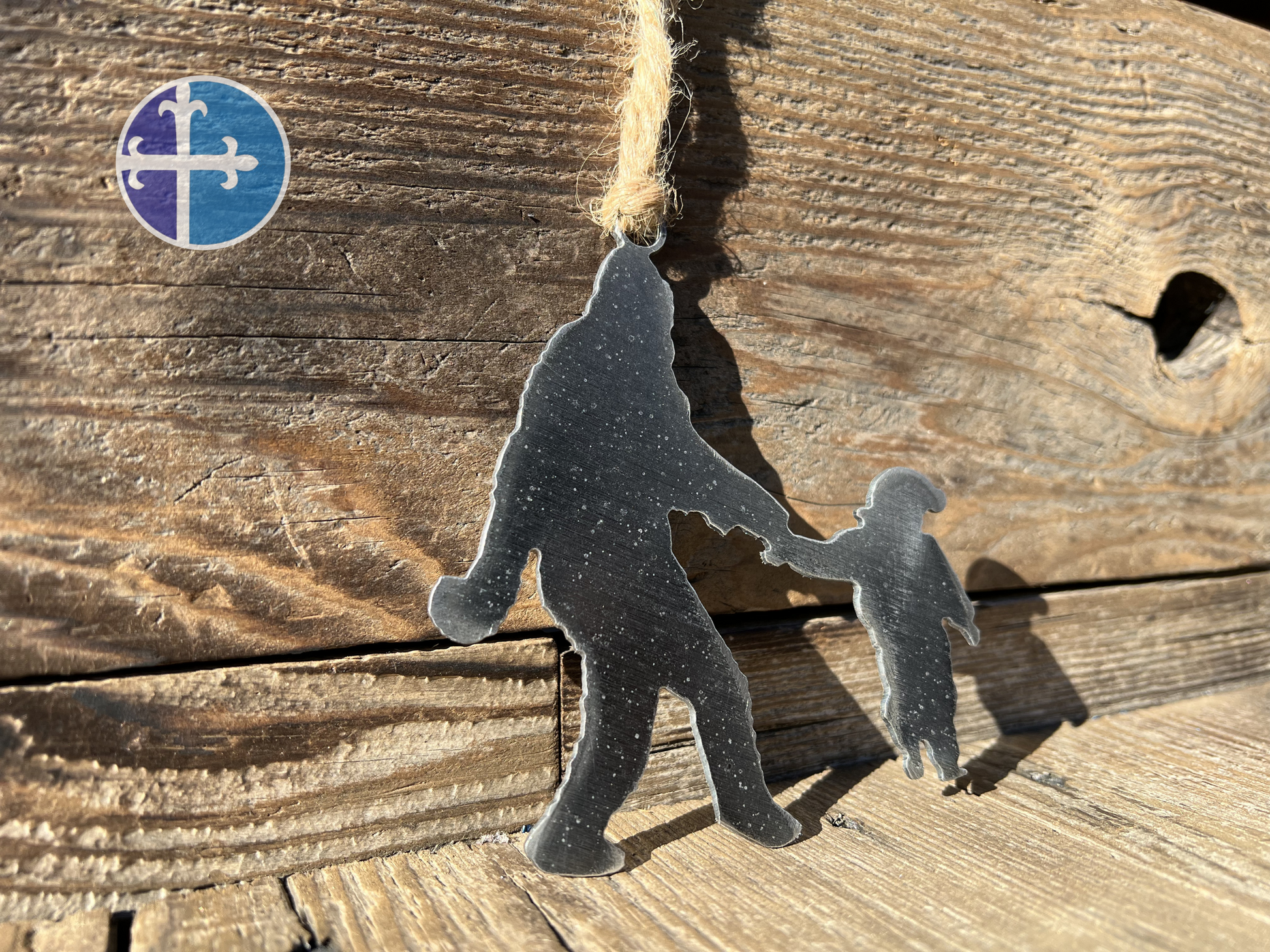 1 Sasquatch and Toddler Ornament approximately 4.5" H x 3.8" W
