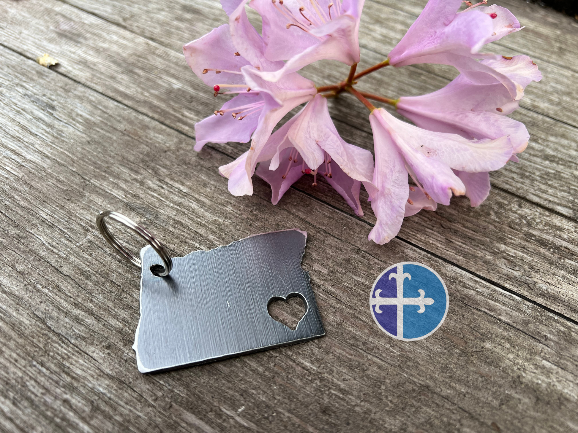 Steel Oregon Keychain with Heart Cutout | Perfect Gift for Oregonians