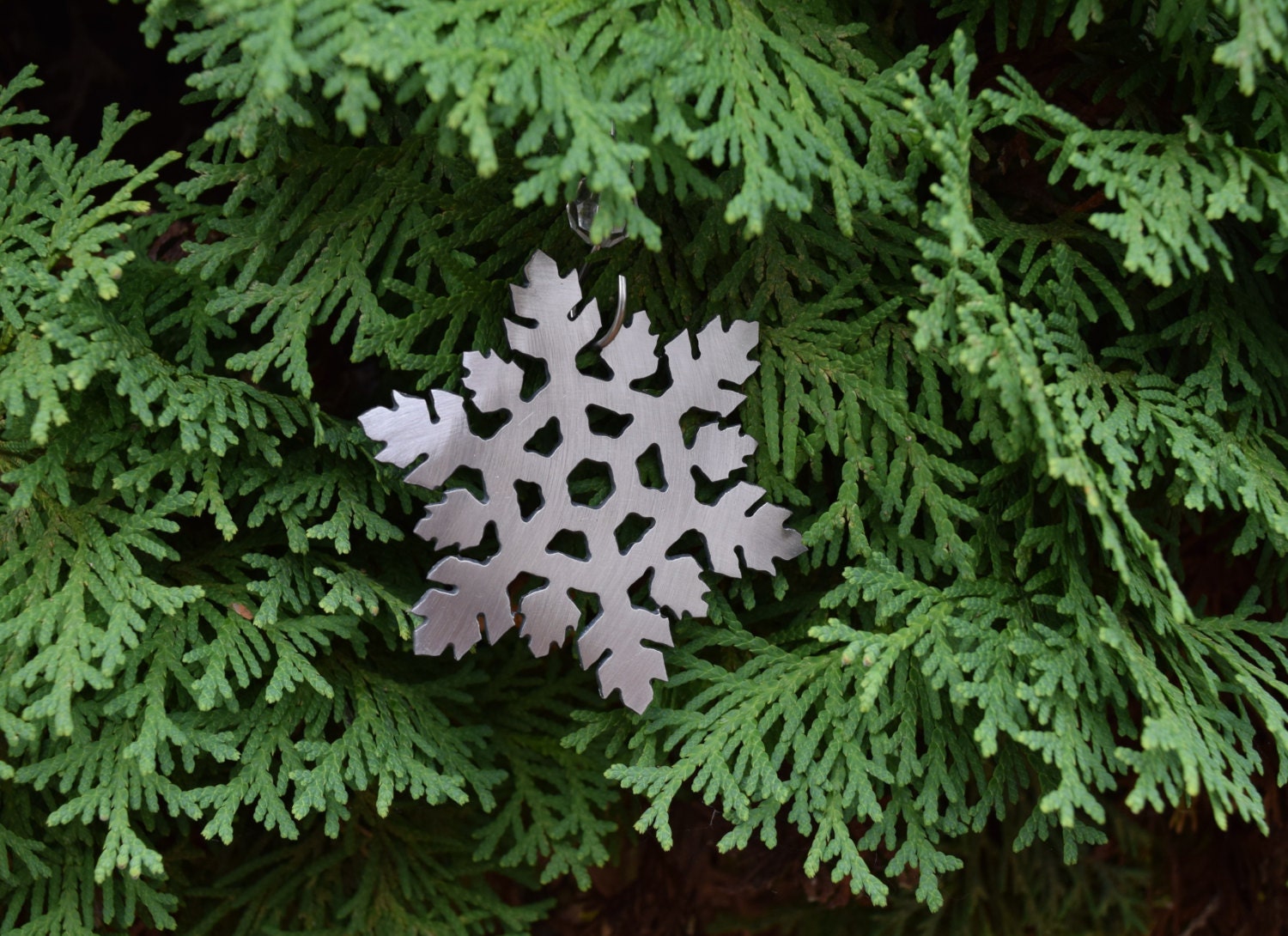 • Raw Steel: you will get the item as it comes off the machine (for an industrial look). Irregular scratches and inconsistencies in the metal may be present. This ornament is made out of 16 gauge hot rolled mild steel that is covered with a thin layer of black oxide (magnetite) which is responsible for its dark gray/bluish tint.