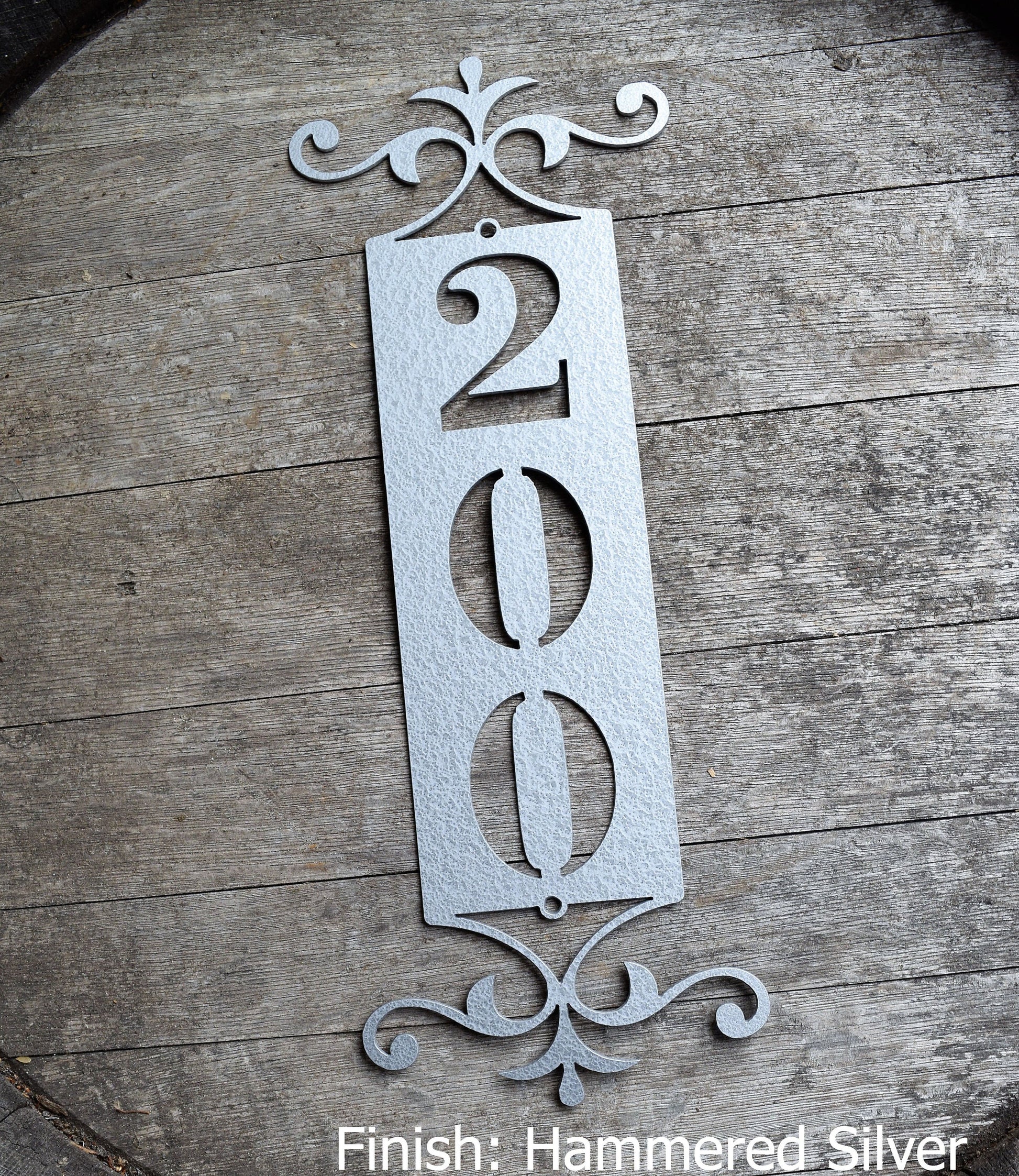 Vertical Metal Outdoor Home Address Sign End Flourish