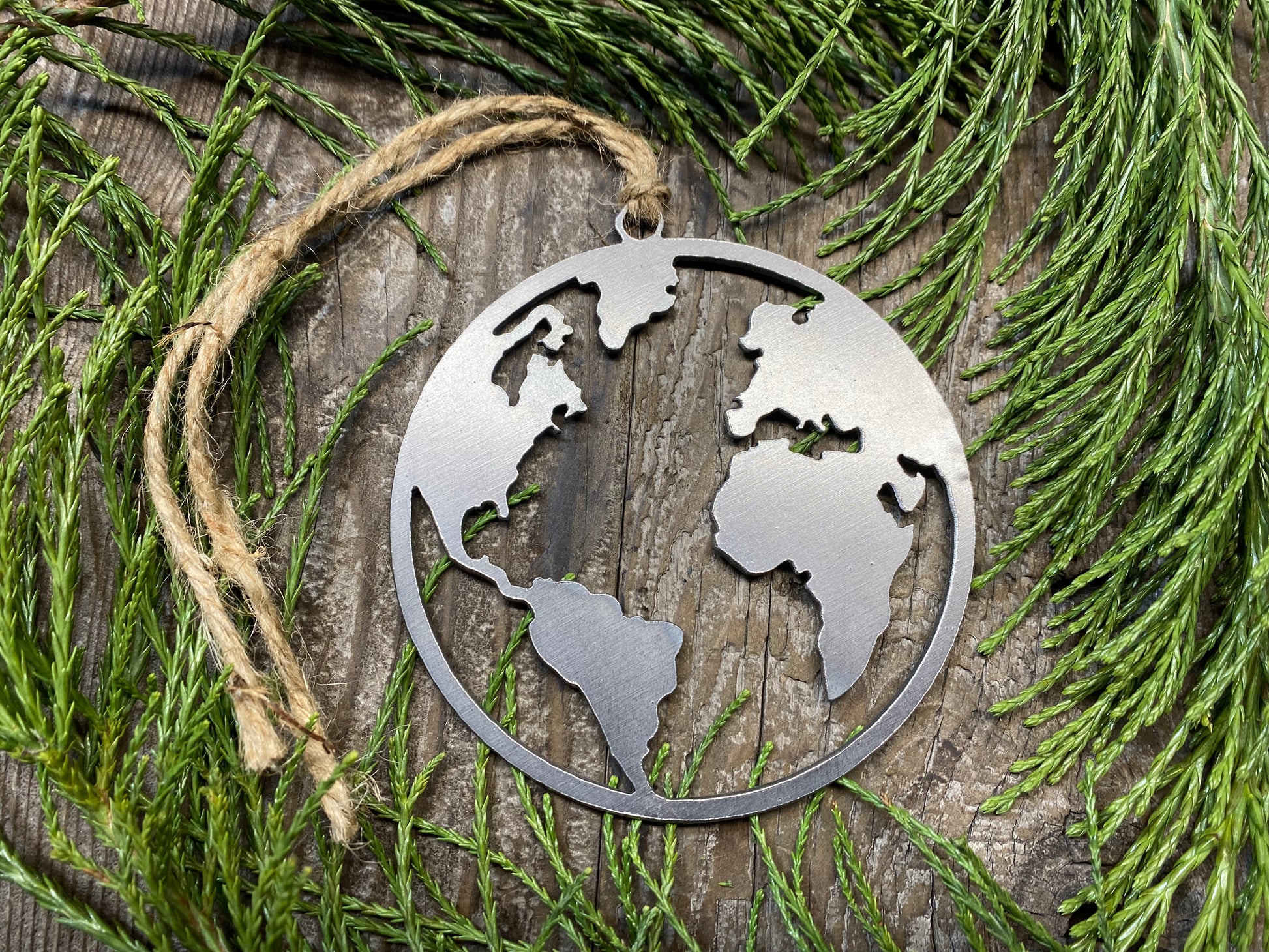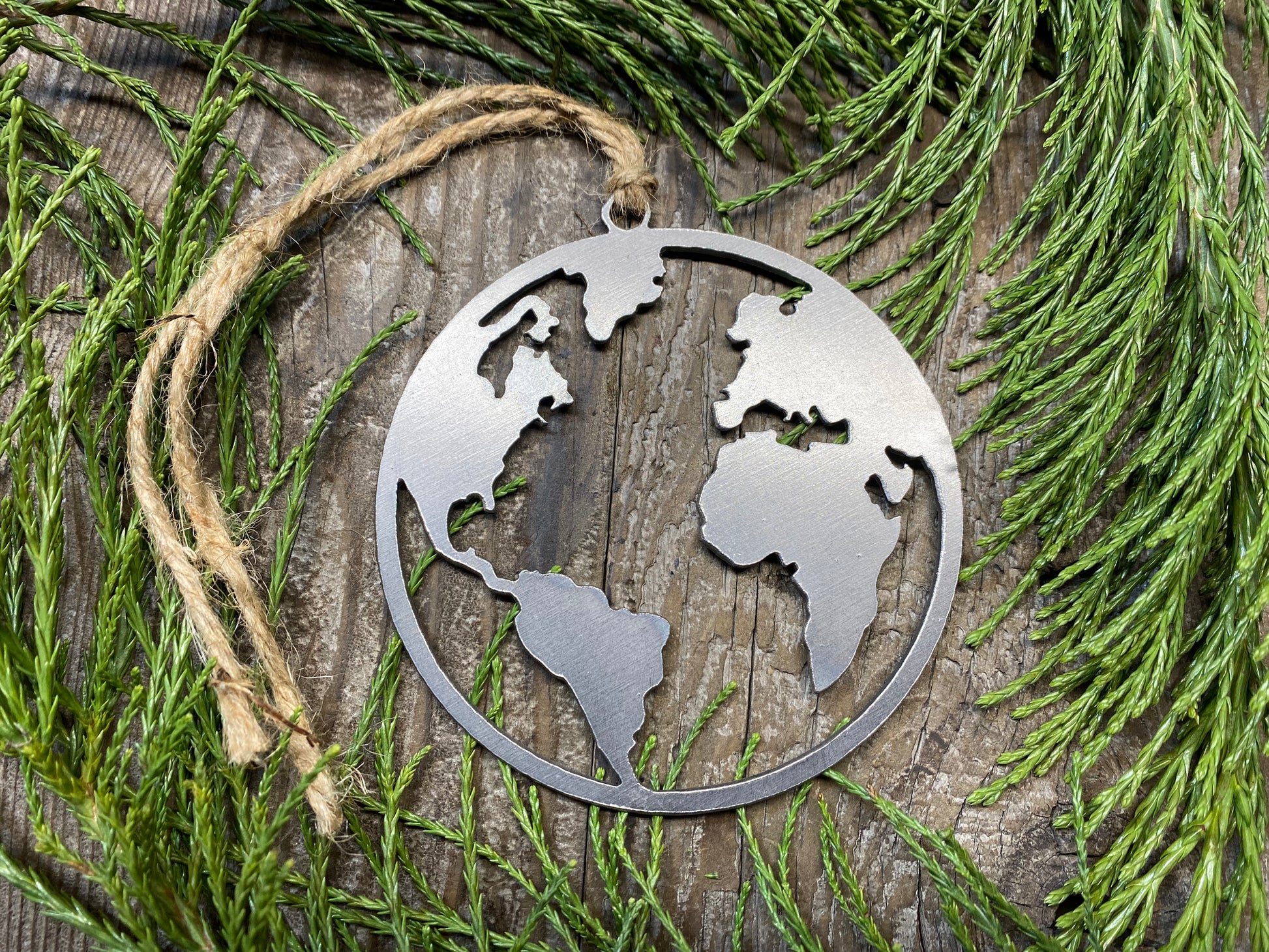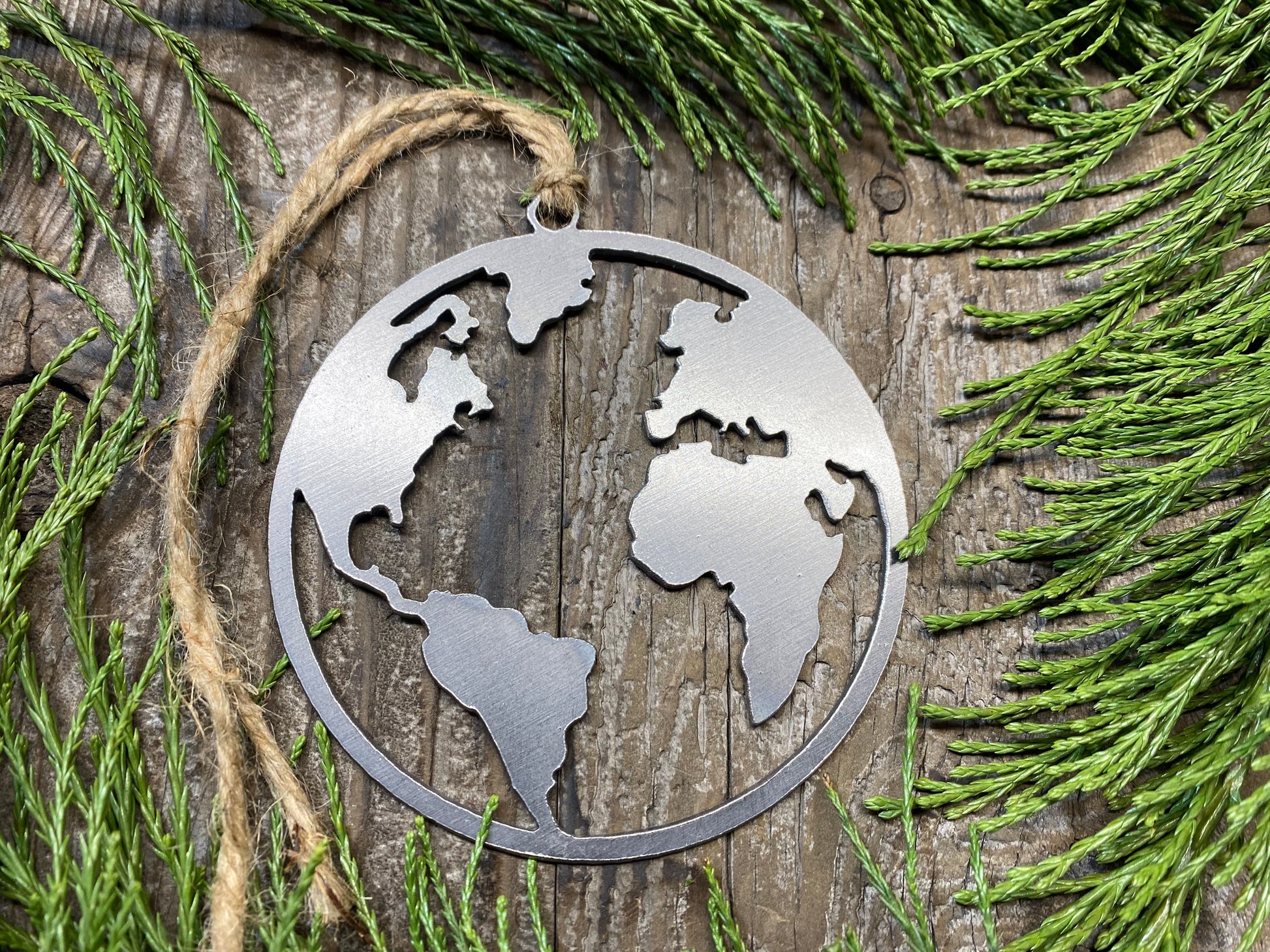 This World Earth Globe Ornament is approximately 4.25" H x 4.5" W.