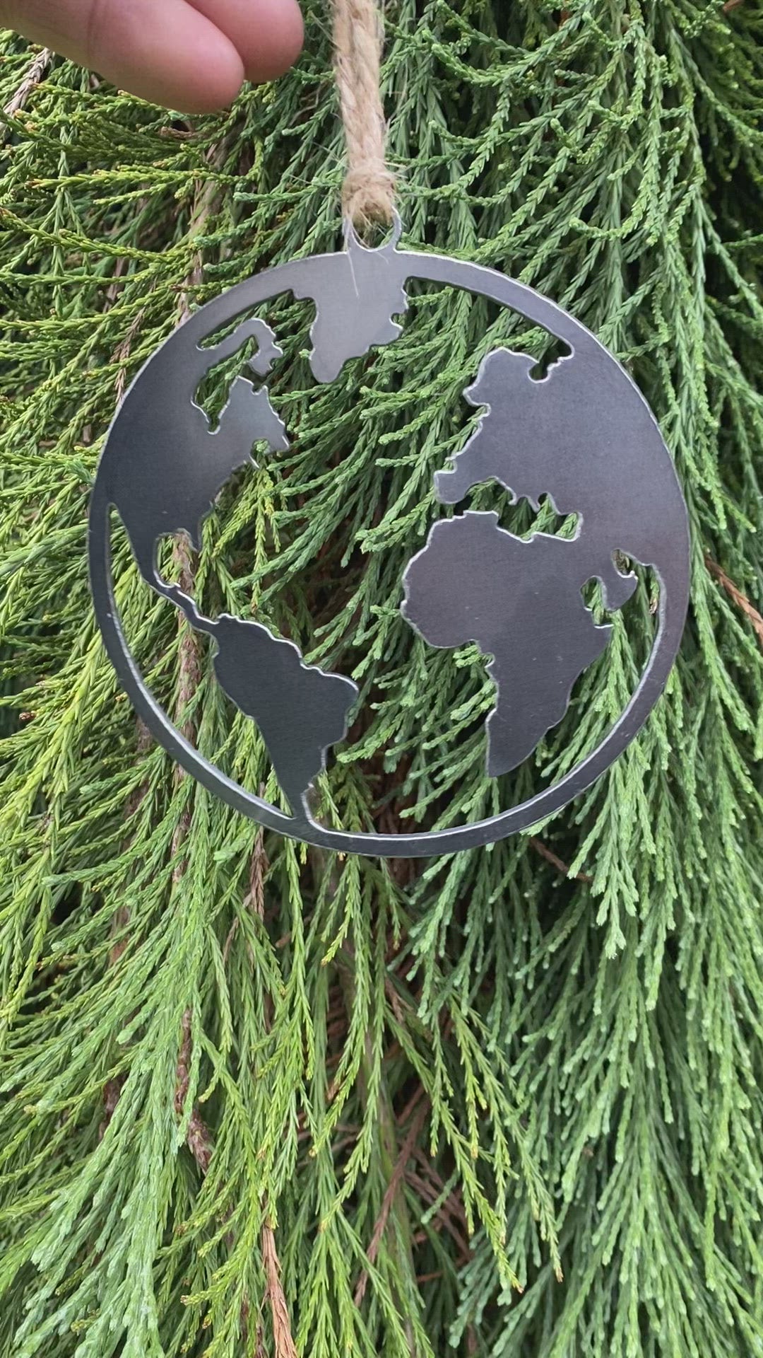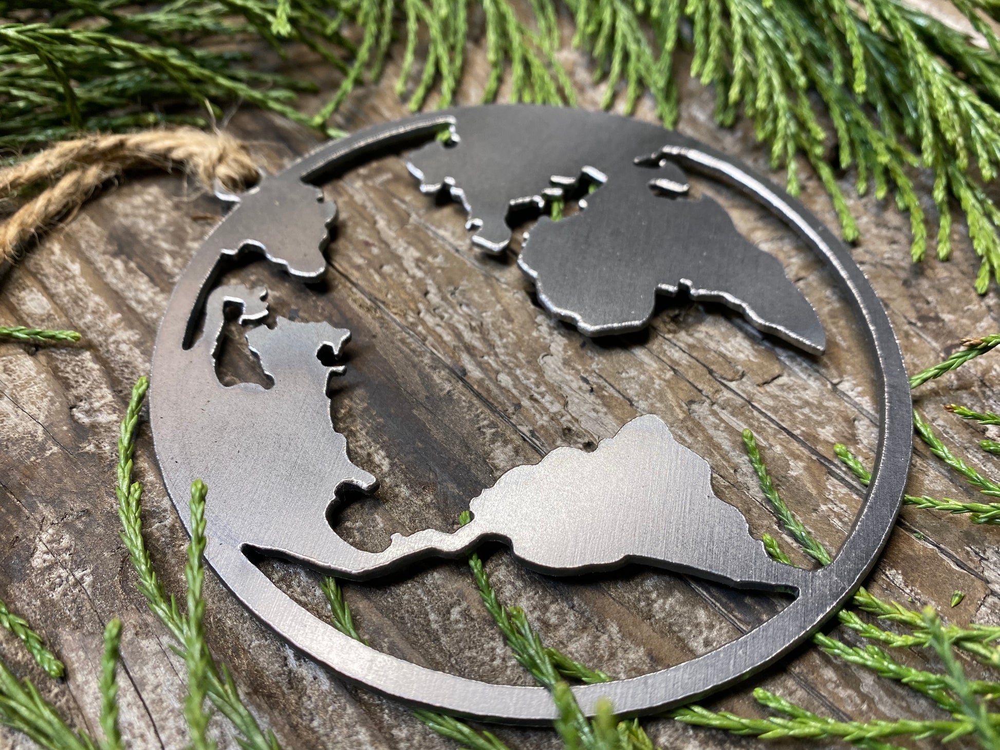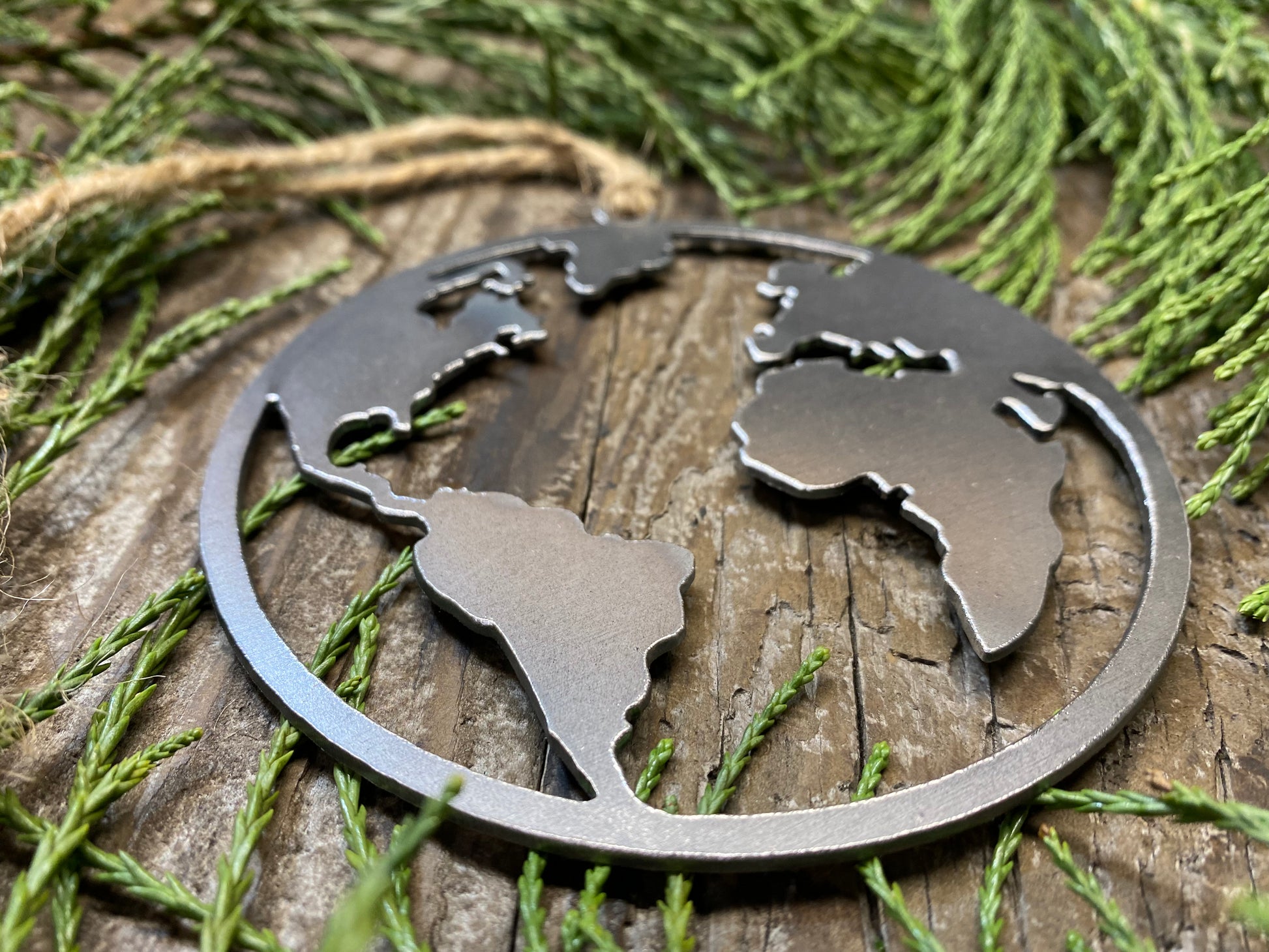 This World Earth Globe Ornament is approximately 4.25" H x 4.5" W.